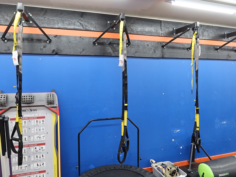 SUSPENSION TRAINING SYSTEM W/WALL-MOUNTED BRACKET (BUYER IS RESPONSIBLE FOR STEP STOOL, TOOLS & REMOVAL)