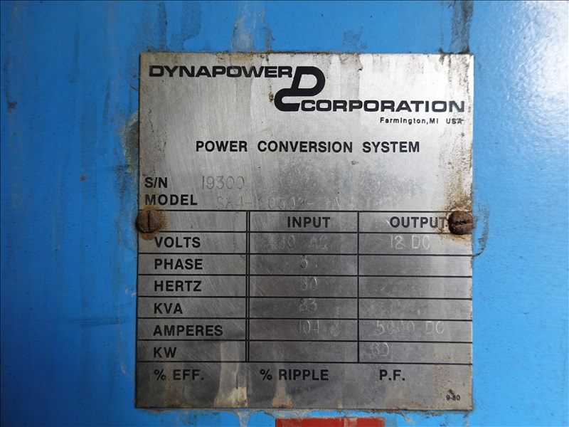POWER CONVERSION SYSTEM RECTIFIER, 460 AC INPUT, 12 DC OUTPUT, CONTROL, 3 PHASE, 60 HZ, 104 AMPERES INPUT, 5,000 DC OUTPUT