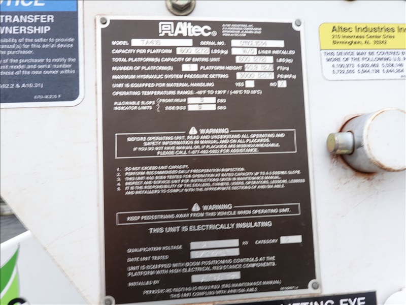 BUCKET TRUCK, MAXXFORCE DIESEL HYBRID, AUTO, A/B, ALTEC TA41S, 40' 600 LBS, HYD OUTRIGGERS