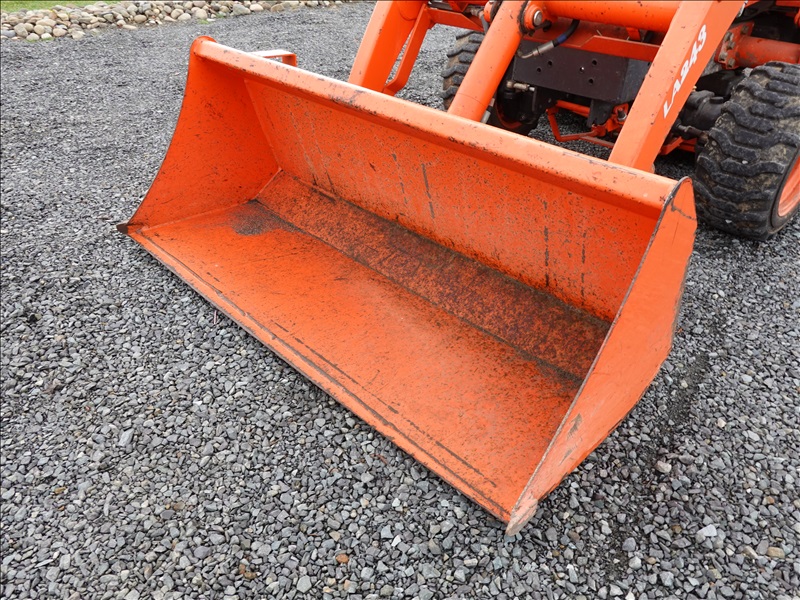 MFWD TRACTOR, 23 HP D902, 2-RANGE HYDROSTATIC, LA243 LOADER BUCKET, 54" MID MOUNT ROTARY MOWER, PTO, 3 POINT HITCH (HOUR METER IS INOPERABLE, NO READOUT)