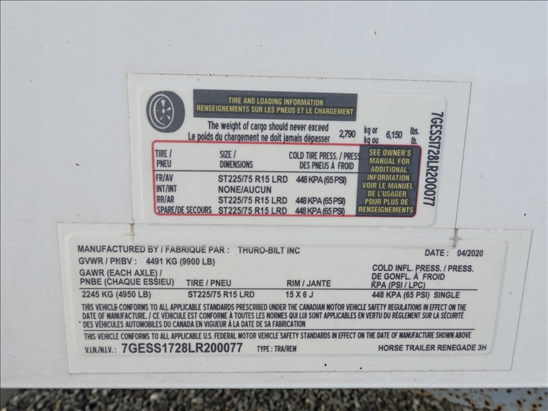 T/A, 17' X 6.5' HORSE TRAILER, SPRING SUSPENSION, SPLIT ROOM, ELECT BRAKES, 225/75R15