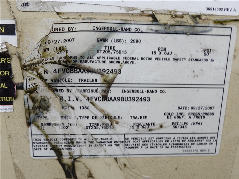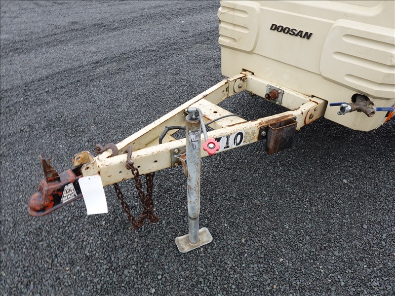 S/A, TRAILER MOUNTED AIR COMPRESSOR, TORSION SUSPENSION, DOOSAN 4 CYL DIESEL, ELECT BRAKES, HOUR METER READS: 1,516