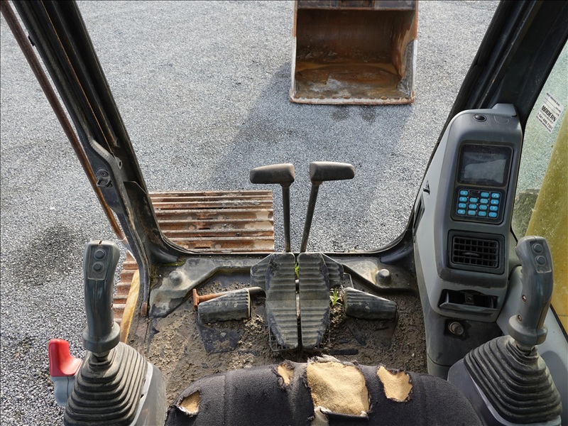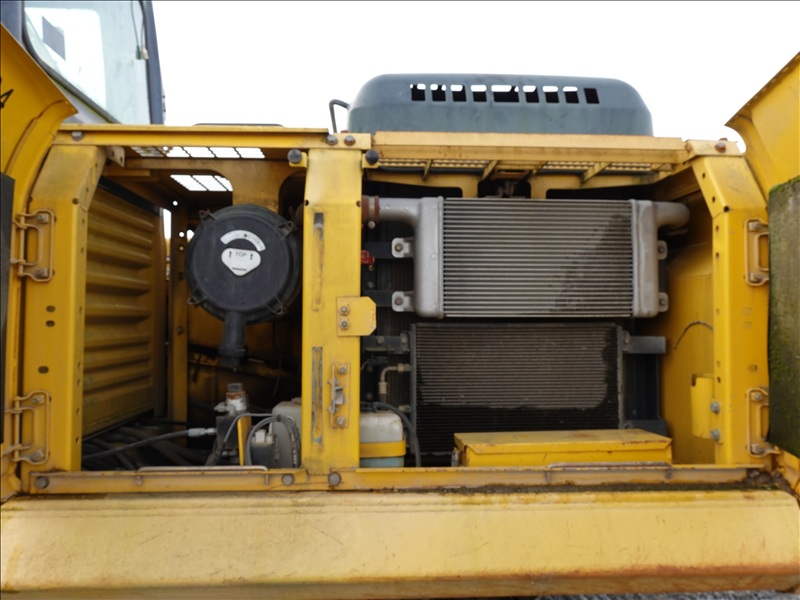 HYDRAULIC EXCAVATOR, 179 HP SAA6D102E-2, 10' STICK, 60" BUCKET, HYD PIN GRABBER, AUX HYD, A/C CAB (NO FRONT GLASS/FRAME, UNABLE TO READ HOUR METER, PLEASE SEE PHOTO)