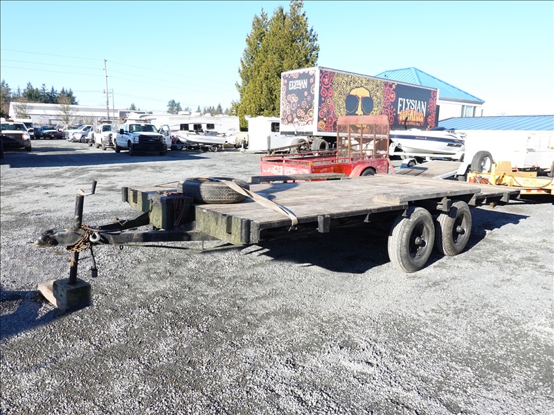 T/A, 16' X 8' FLATBED TRAILER, SPRING SUSPENSION, ELECT BRAKES, 7-14.5