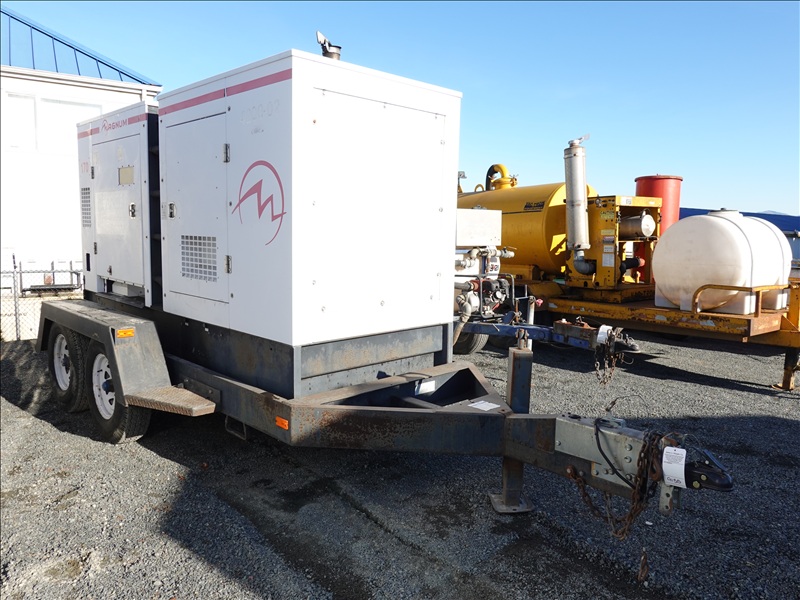 T/A, 171 KVA TRAILER MOUNTED GENERATOR, JOHN DEERE 6068HF285K 6 CYL DIESEL, 120/208/240/480V, SINGLE OR 3 PHASE, SURGE BRAKES, HOUR METER READS: 13,102