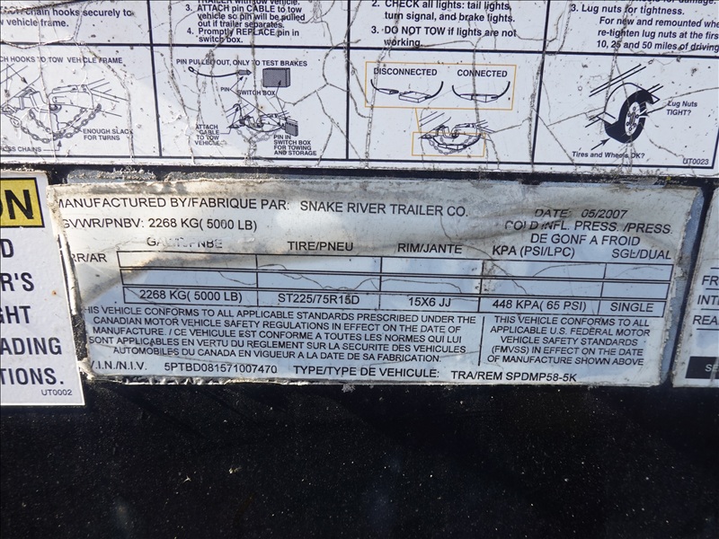 S/A, 8'X4'7" 5000 LB GVWR DUMP TRAILER, SPRING SUSPENSION, ELECT BRAKES, 225/75R15