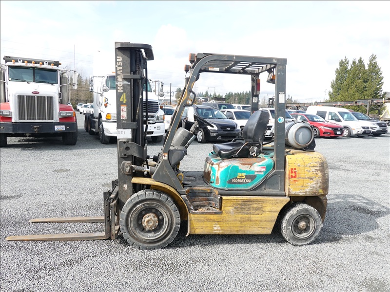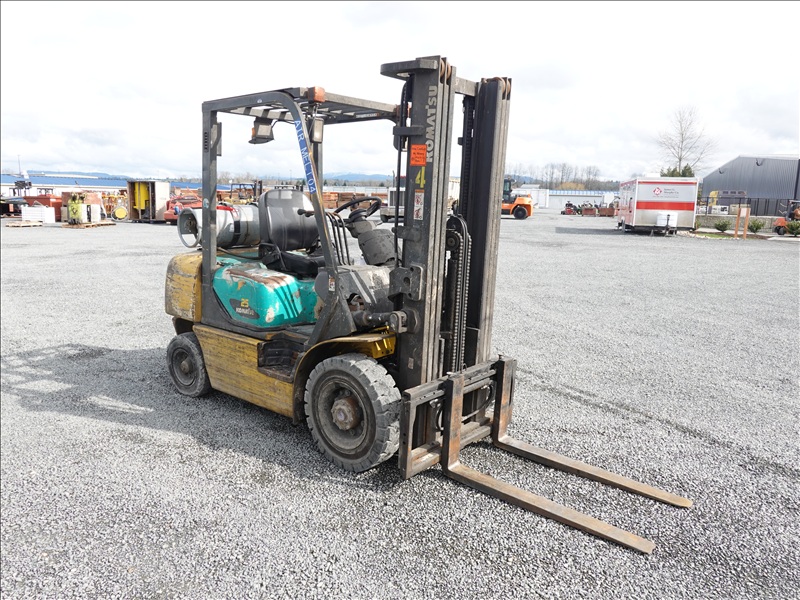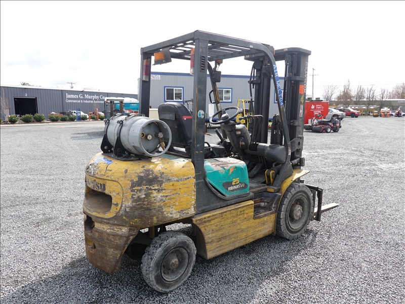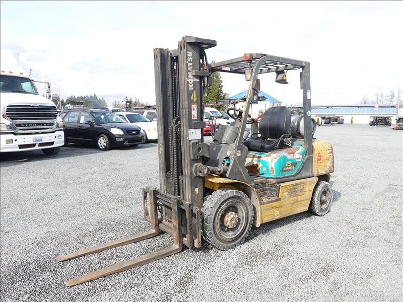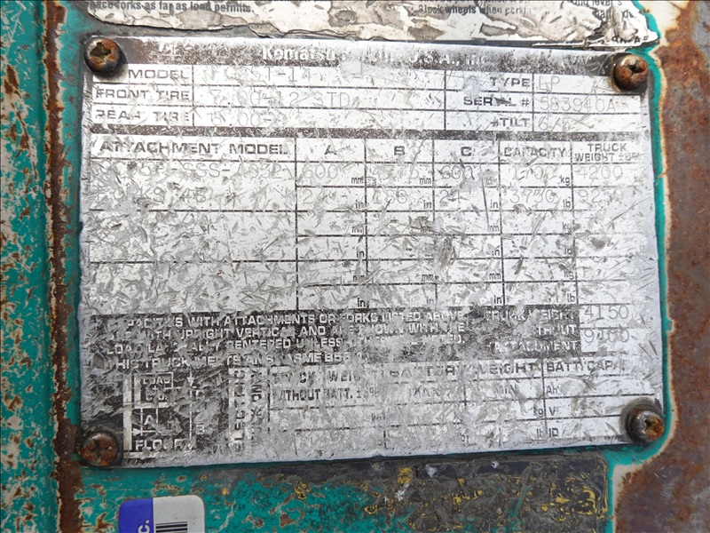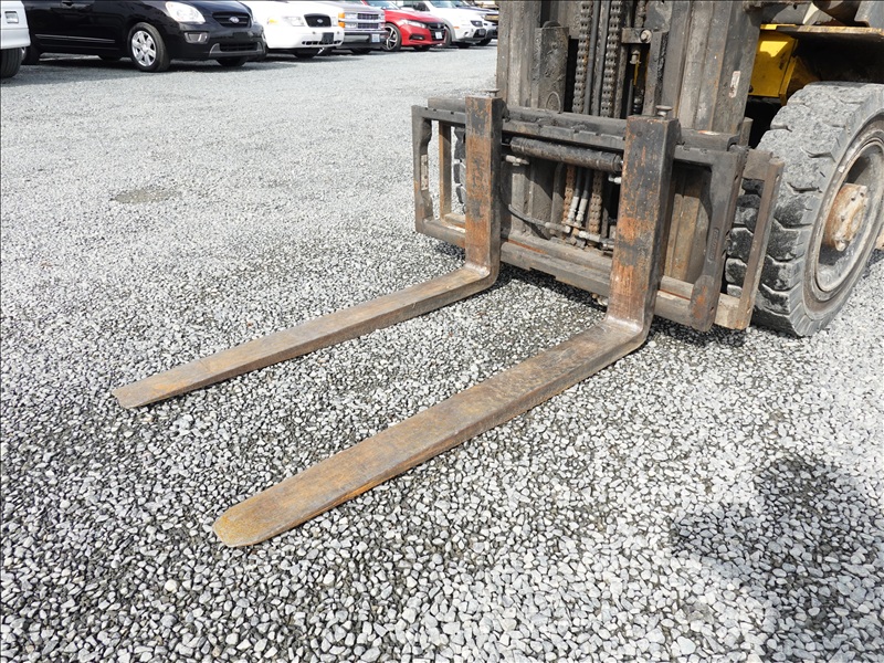 3750 LB SOLID TIRE FORKLIFT, 186" FORK HEIGHT, 3 STAGE MAST, SIDE SHIFT, 4 CYL LPG (NO PROPANE TANK)