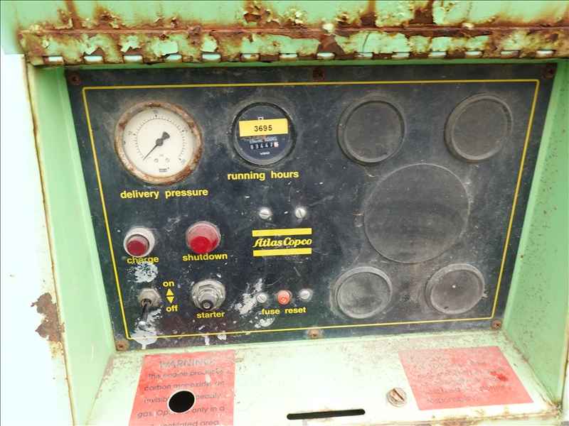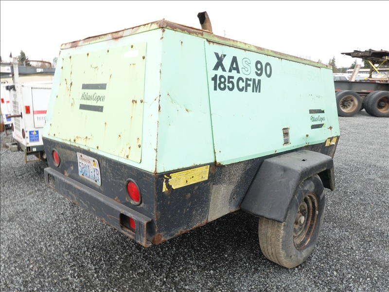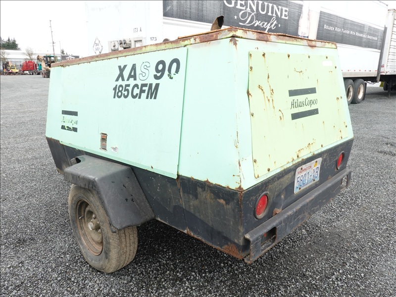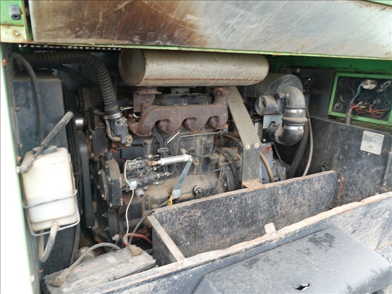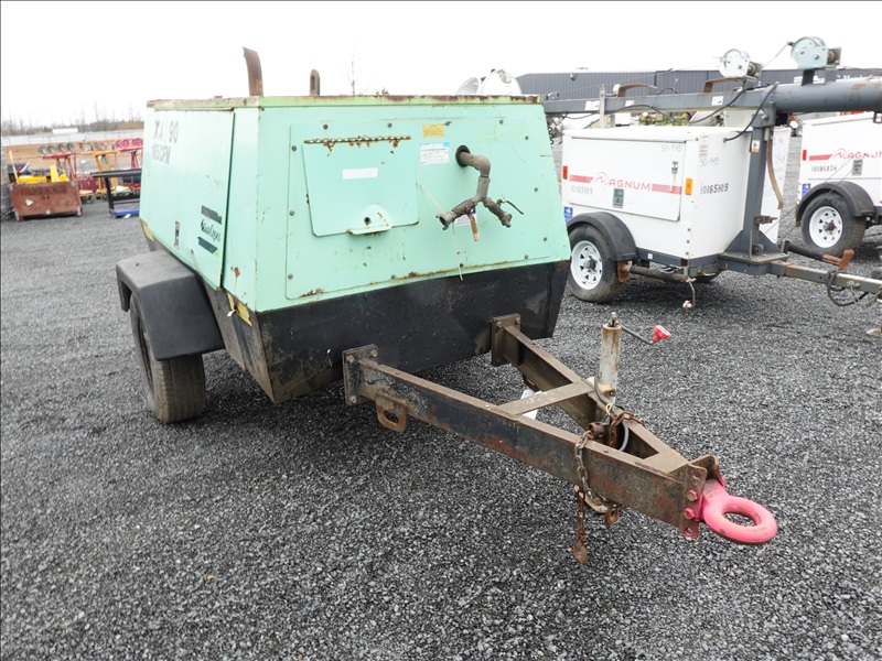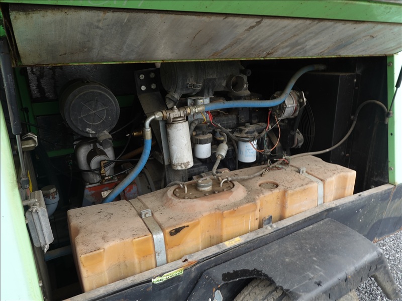 S/A, 116 PSI TRAILER MOUNTED AIR COMPRESSOR, SPRING SUSPENSION, 4 CYL JOHN DEERE DIESEL, HOUR METER READS: 3,447 (BAD BATTERY, WILL NOT START)