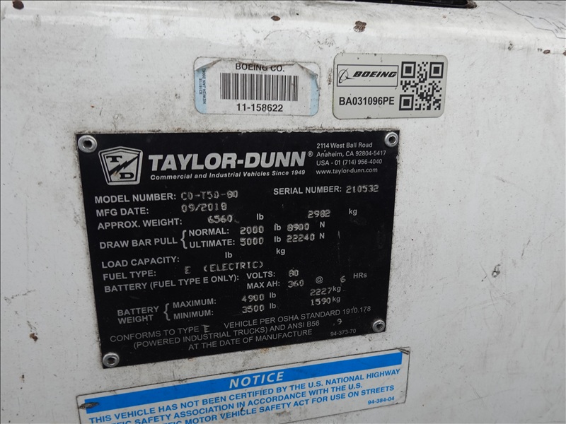 TIGER TOW TRACTOR, FRONT & REAR HITCH, 80V ELECTRIC, CAB (HOUR METER READS: N/A, DEAD BATTERY, OPERATION CONDITION UNKNOWN)
