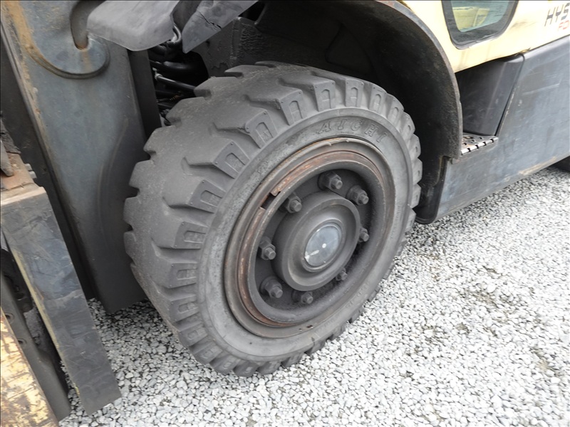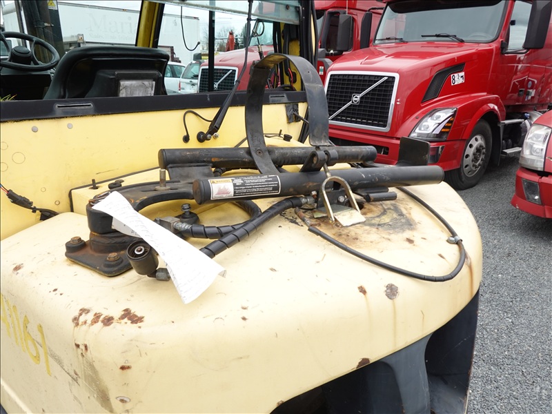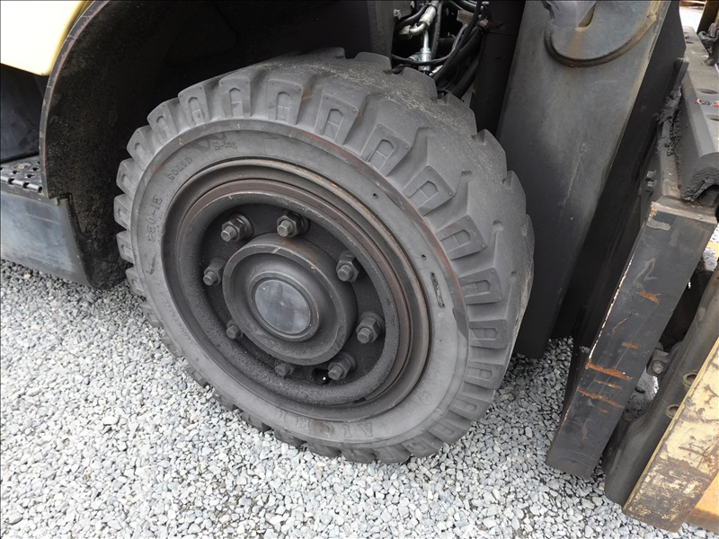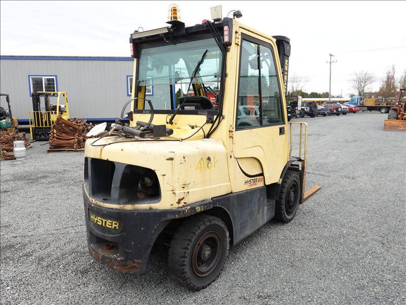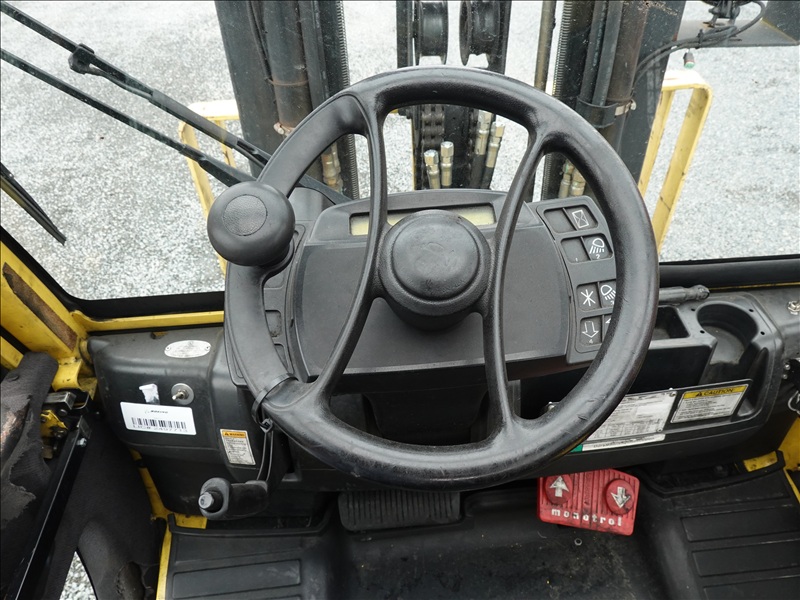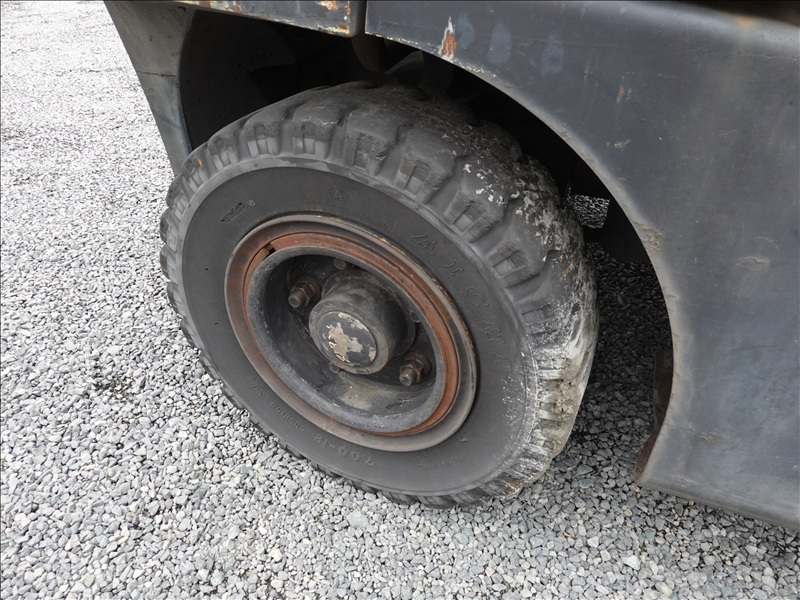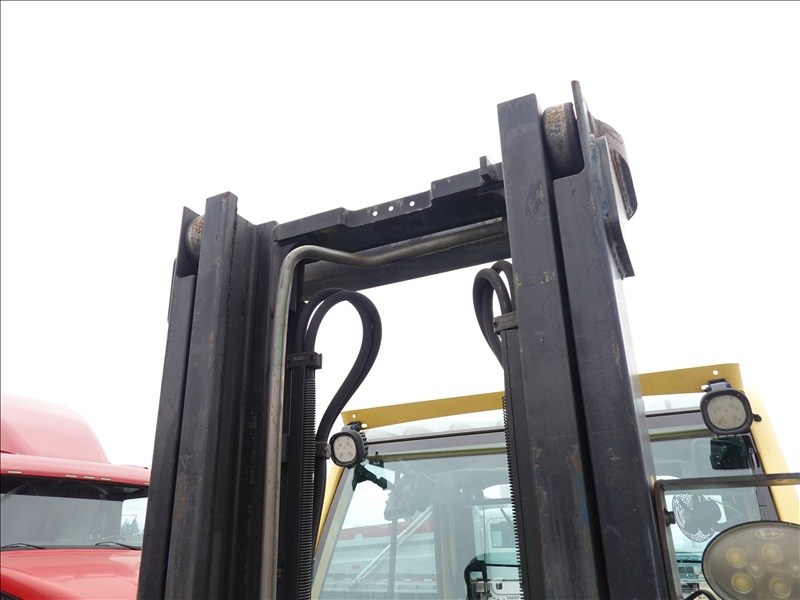 7,750 LB SOLID TIRE FORKLIFT, 144" FORK HEIGHT, 2-STAGE MAST, SIDE SHIFT, FORK POSITIONER, FTC, 6 CYL LPG, CAB (HOUR METER READS: N/A, ENGINE/WIRING DISMANTLED, OPERATING CONDITION UNKNOWN)
