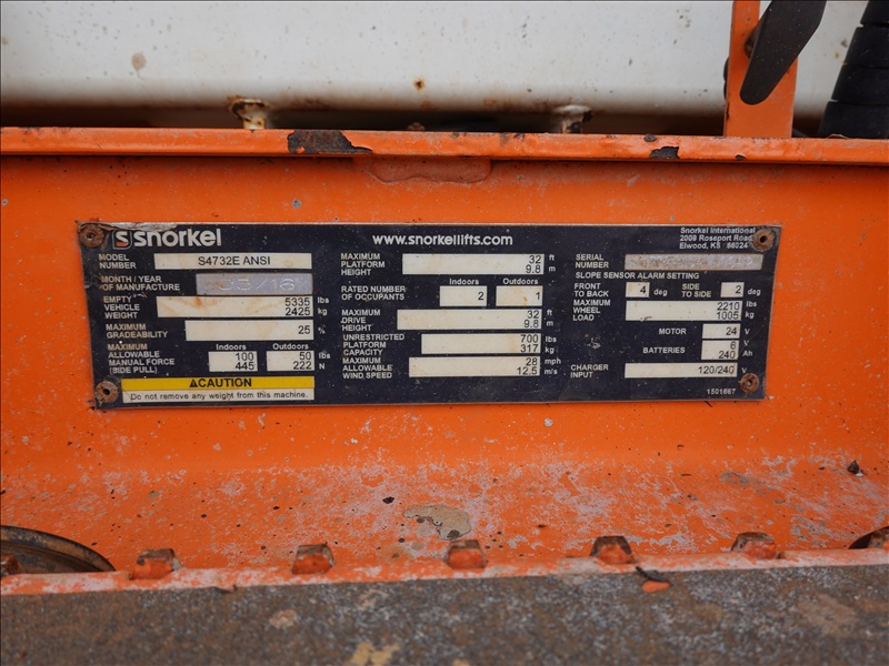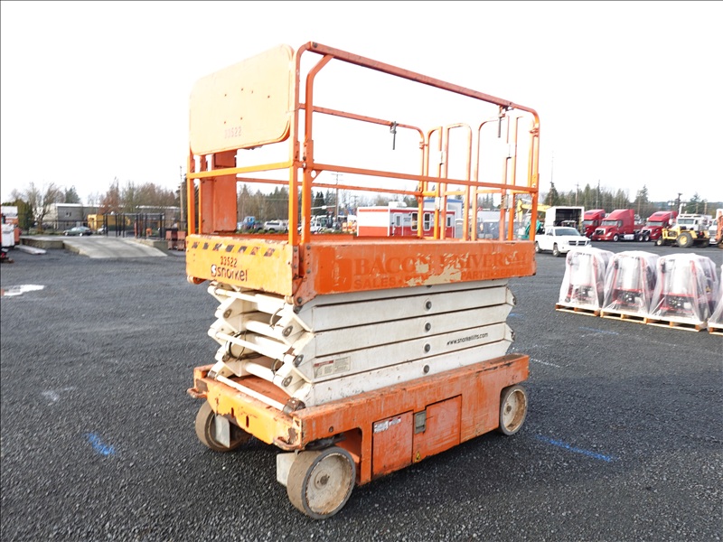 SCISSOR LIFT, 32' PLATFORM HEIGHT, 700 LB CAPACITY, A/C RECEPTACLE AT PLATFORM, 24V ELECTRIC, HOUR METER READS: 421