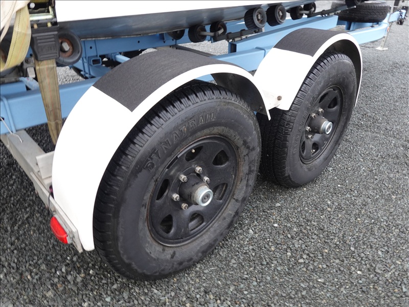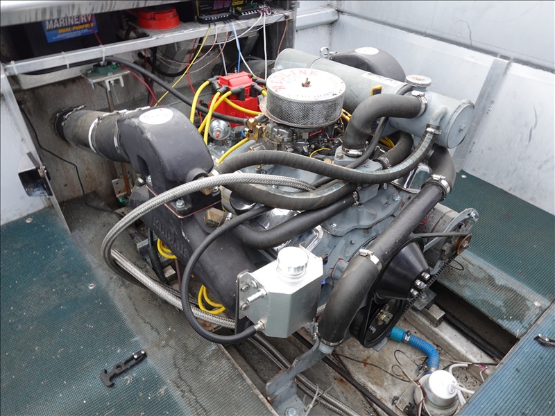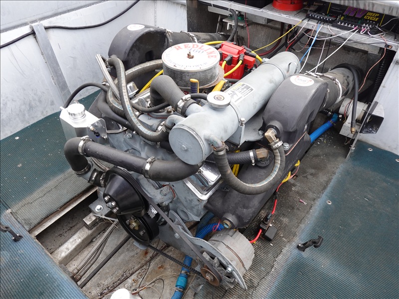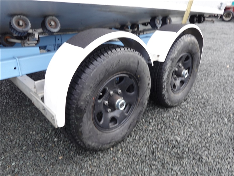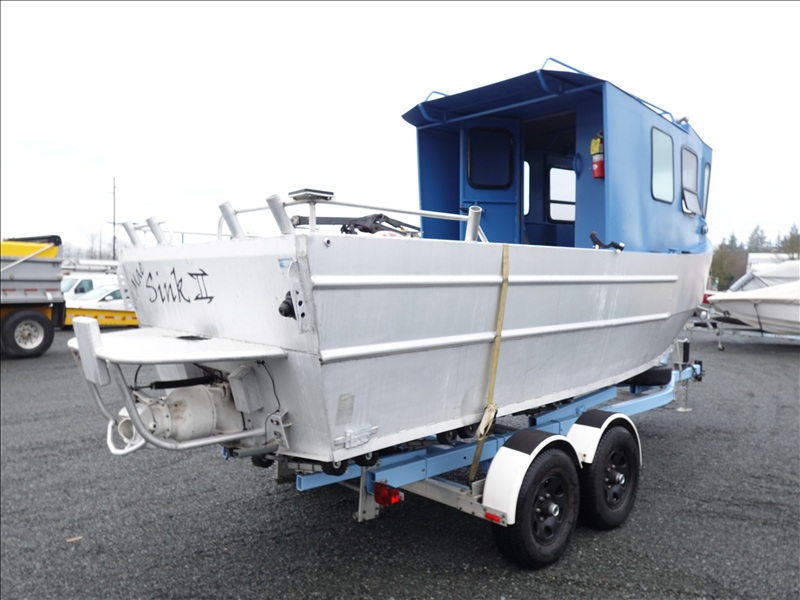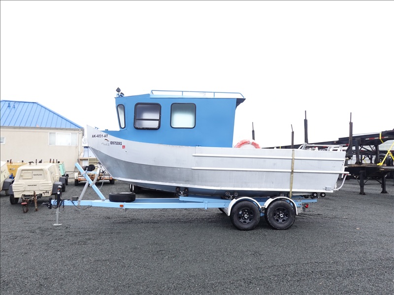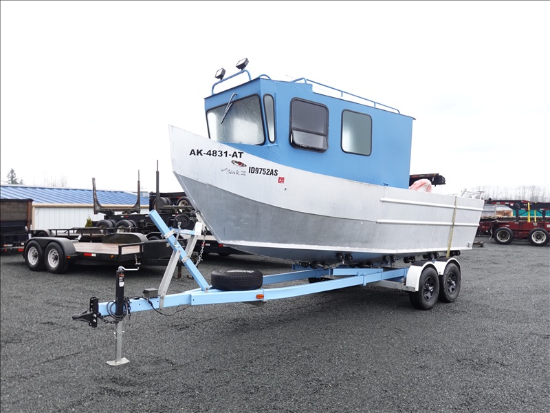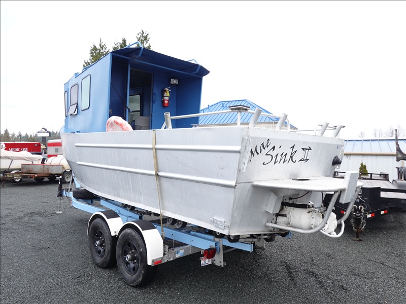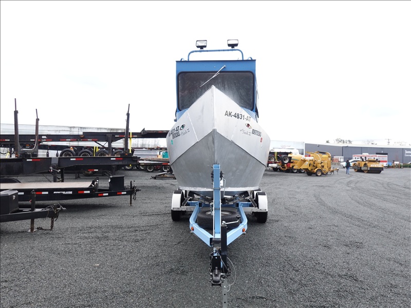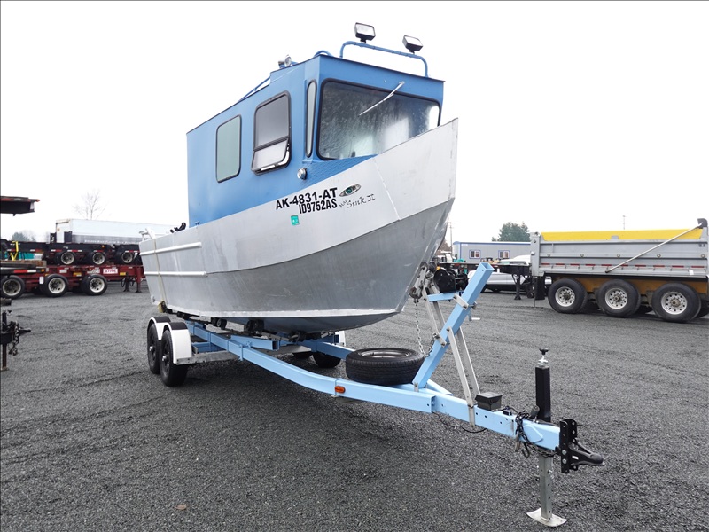 21' ALUMINUM JET BOAT, INBOARD V8, HOUR METER READS: 125, W/ 1978 EZ-LOADER, T/A, APPROX 24' STEEL BOAT TRAILER, SPRING SUSPENSION, ELECT BRAKES, S/N: