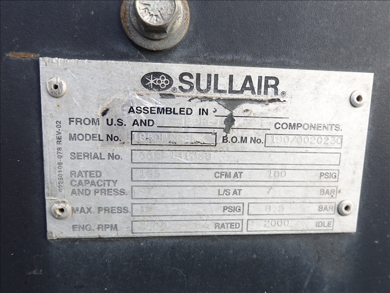 S/A, 125 PSI TRAILER MOUNTED AIR COMPRESSOR, TORSION SUSPENSION, 4 CYL PERKINS DIESEL, HOUR METER READS: 3,000