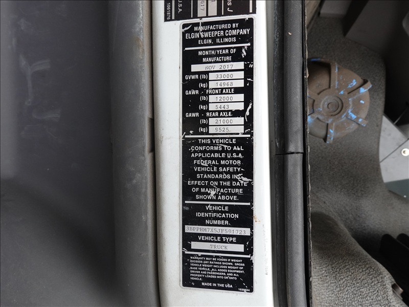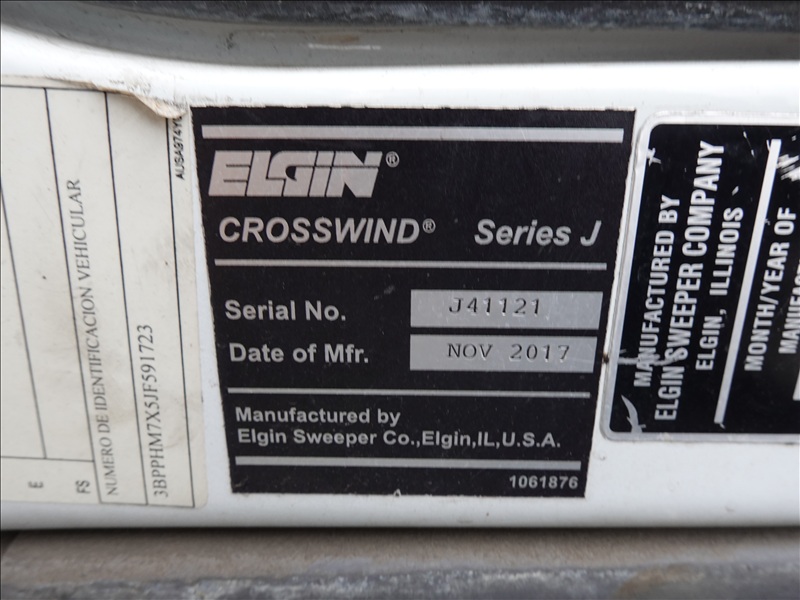 PACCAR, PX-7, ALLISON AUTO, A/B, AUTO LUBE, ELGIN CROSSWIND REGENERATIVE AIR SWEEPER, JOHN DEERE AUX DIESEL (SWEEPER HOUR METER READS: 1,048)