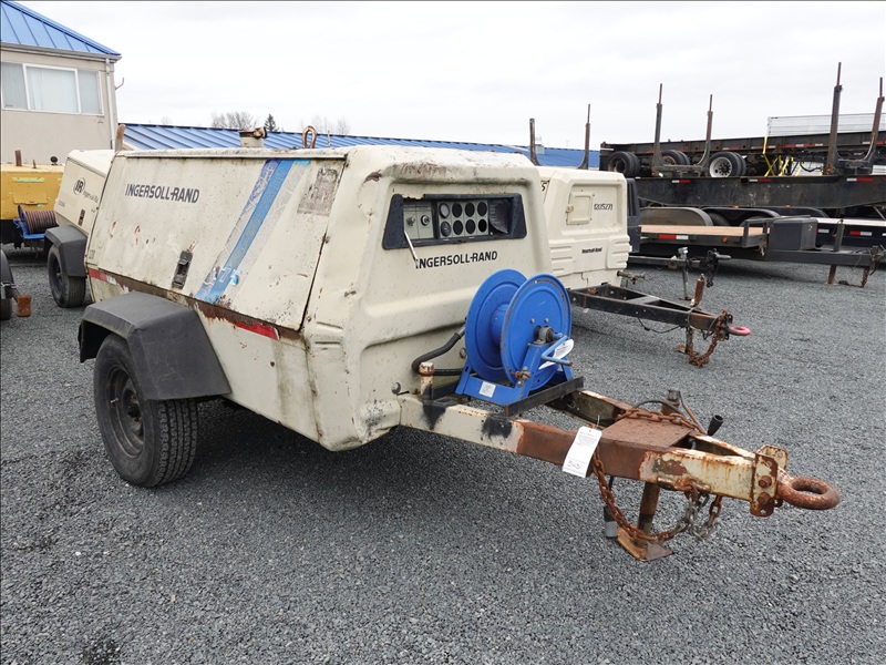 S/A, TRAILER MOUNTED AIR MOUNTED AIR COMPRESSOR, SPRING SUSPENSION, 4 CYL DEUTZ DIESEL, HOSE REEL, HOUR METER READS: 1,527
