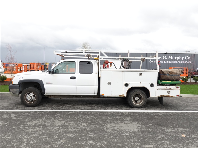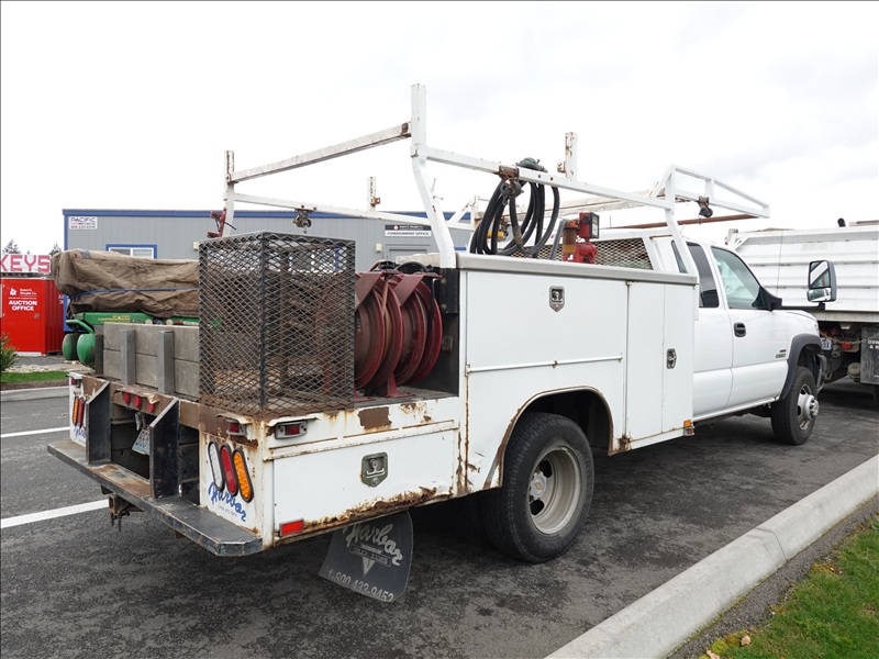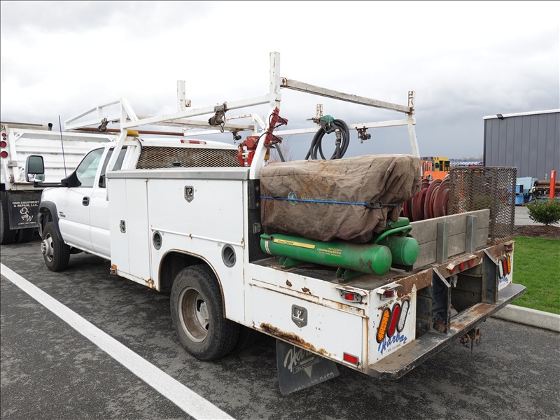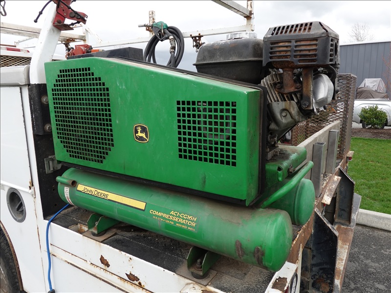 SERVICE BODY, 6.6L DURAMAX, AUTO, TRANSFER TANK, JD AIR COMPRESSOR, HOSE REEL