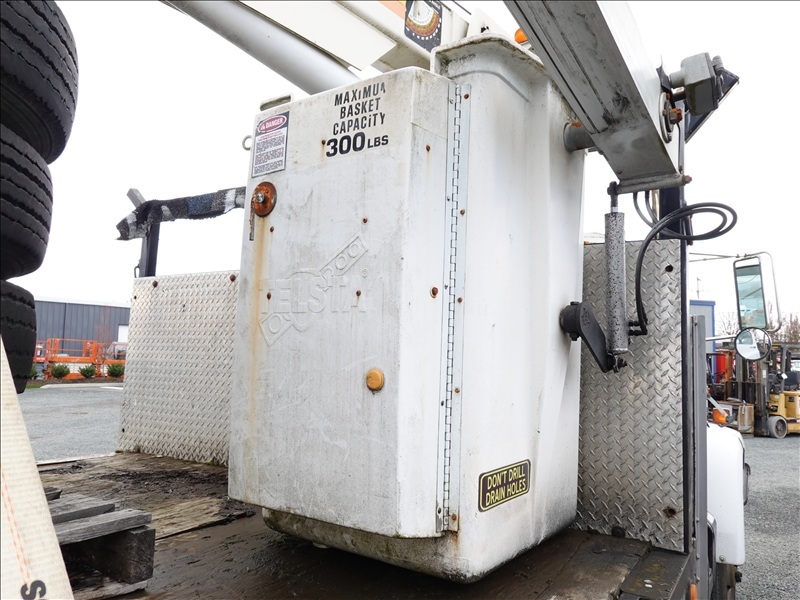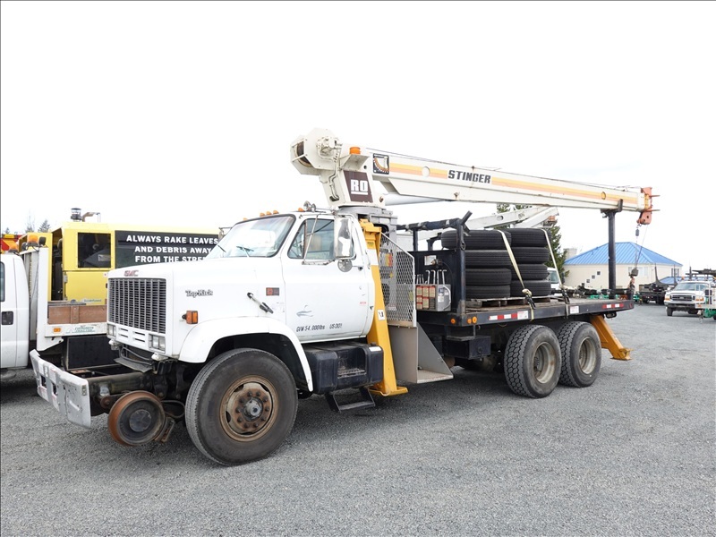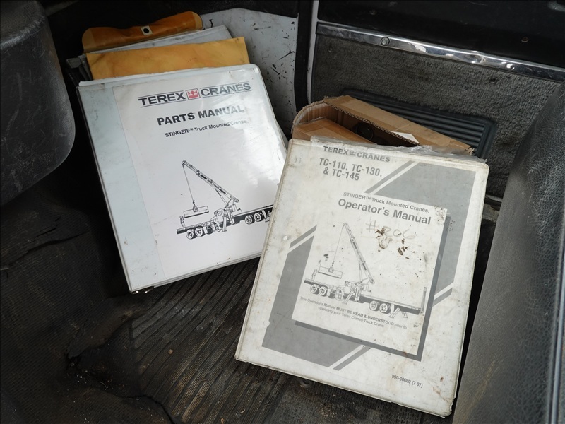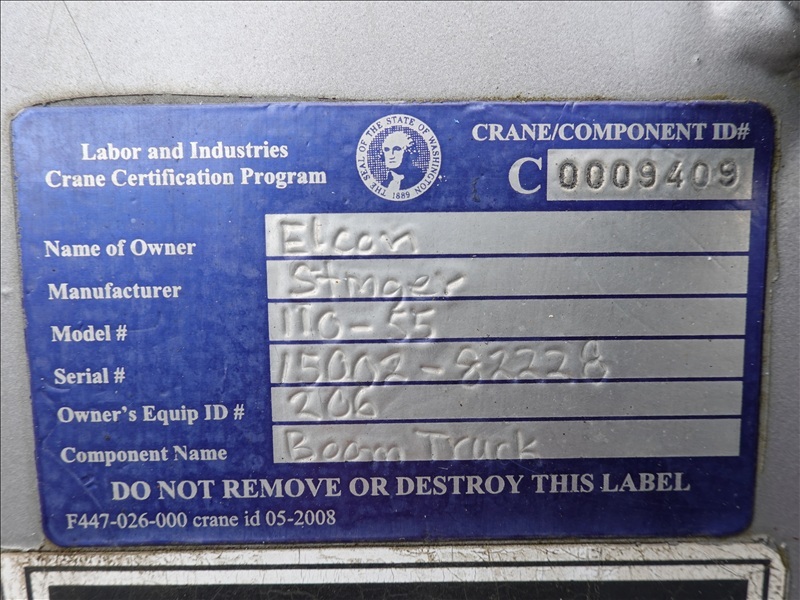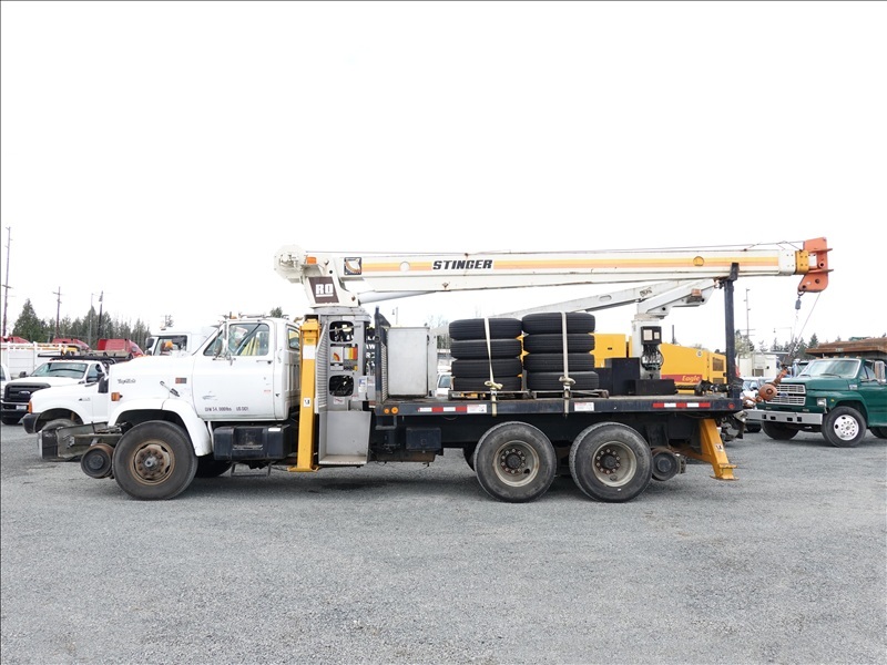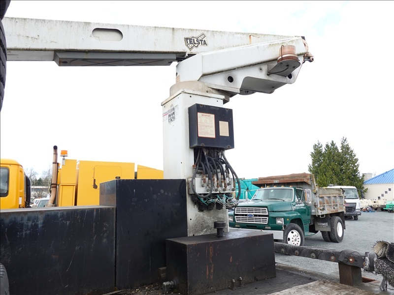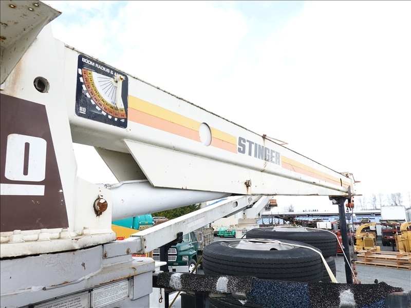 CRANE TRUCK, STINGER R0 110-55 CRANE, 22,500 LB CAP, TELSTA BUCKET BOOM, 23' REACH, 350 LB CAP, RAILROAD GUIDES, CAT 3208, 8LL SPD, PUMP