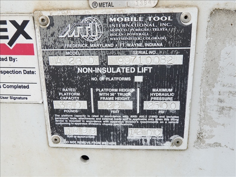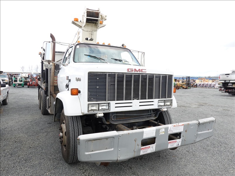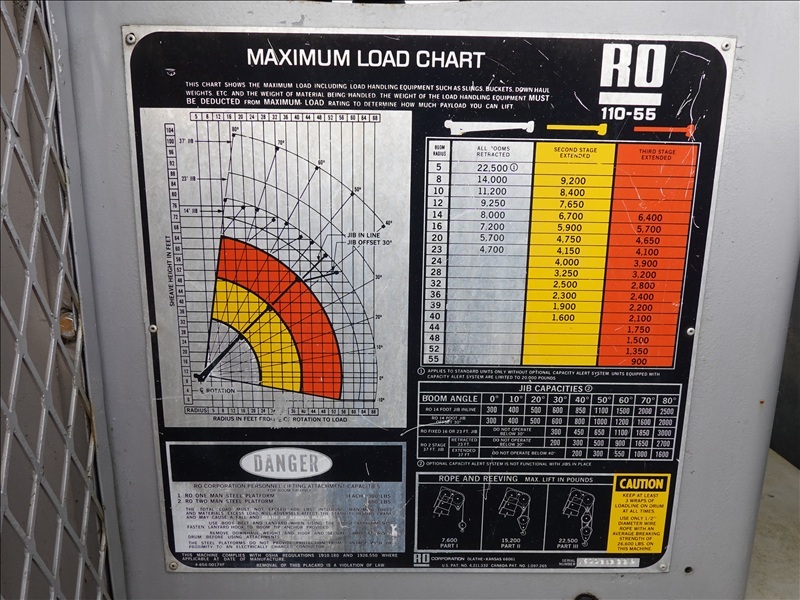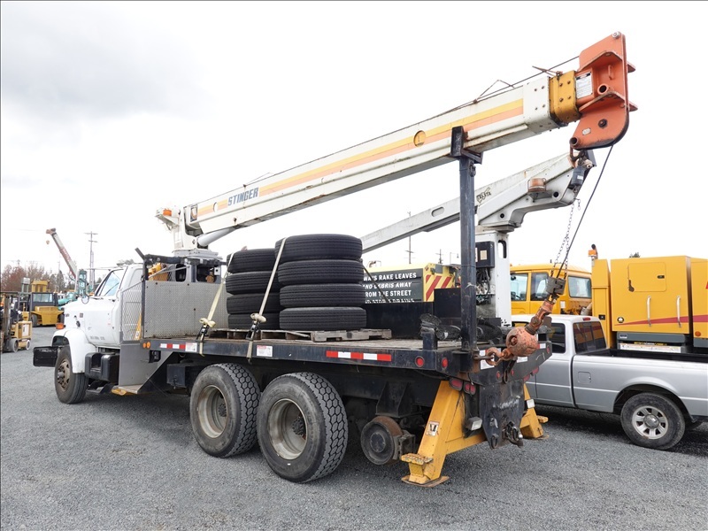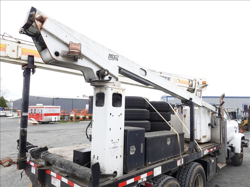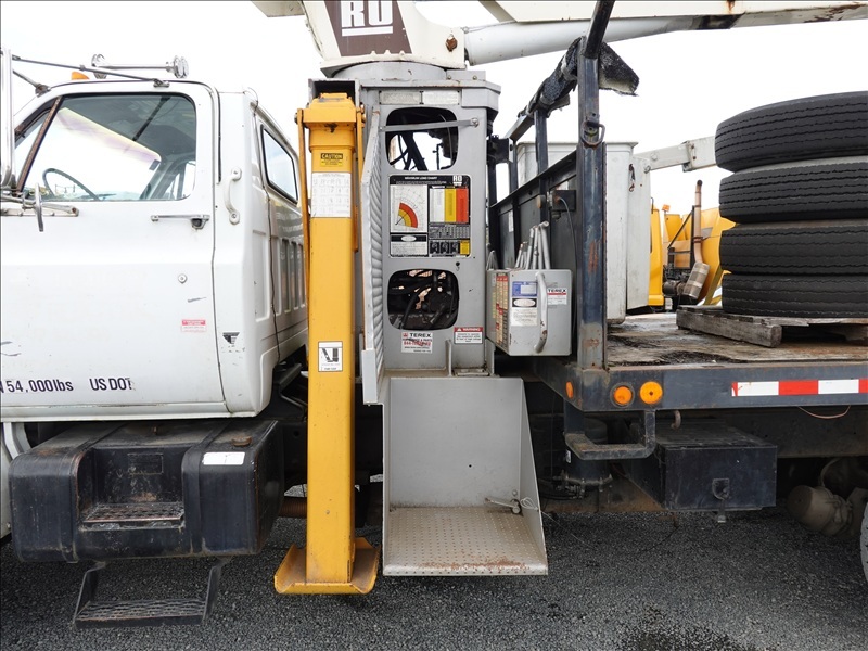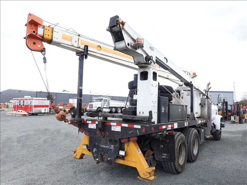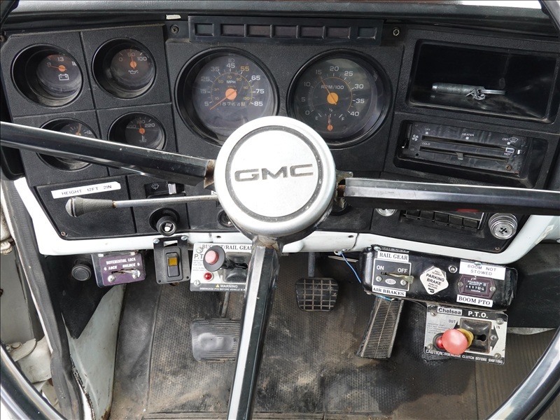 CRANE TRUCK, STINGER R0 110-55 CRANE, 22,500 LB CAP, TELSTA BUCKET BOOM, 23' REACH, 350 LB CAP, RAILROAD GUIDES, CAT 3208, 8LL SPD, PUMP