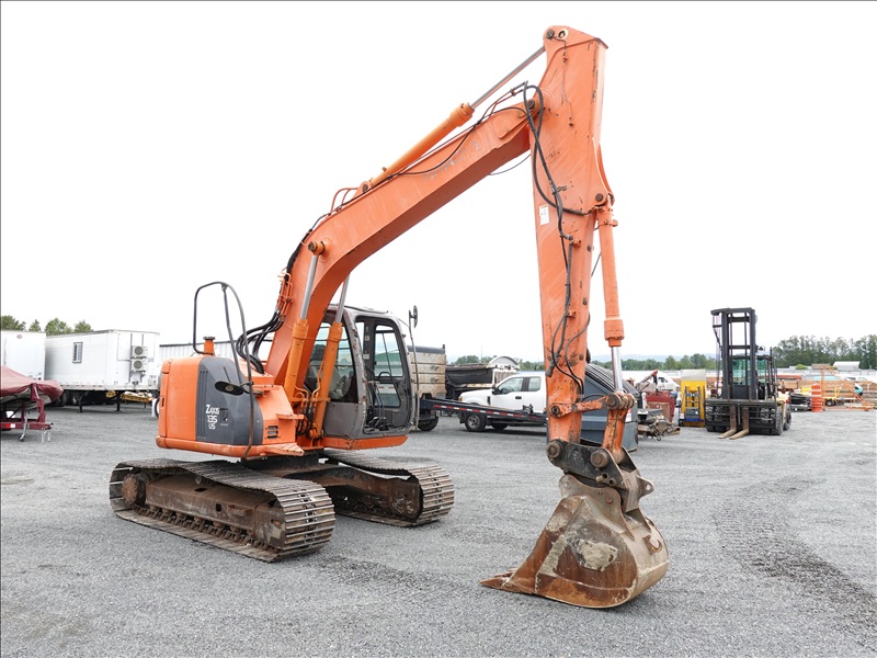 HYDRAULIC EXCAVATOR, 88 HP ISUZU CC-4BG1T, 9'11" STICK, 25" BUCKET, PSM PIN GRABBER, AUX HYD, A/C CAB (FRONT GLASS/FRAME MISSING)