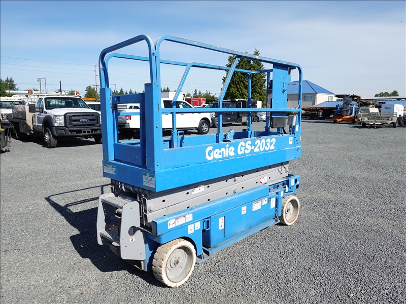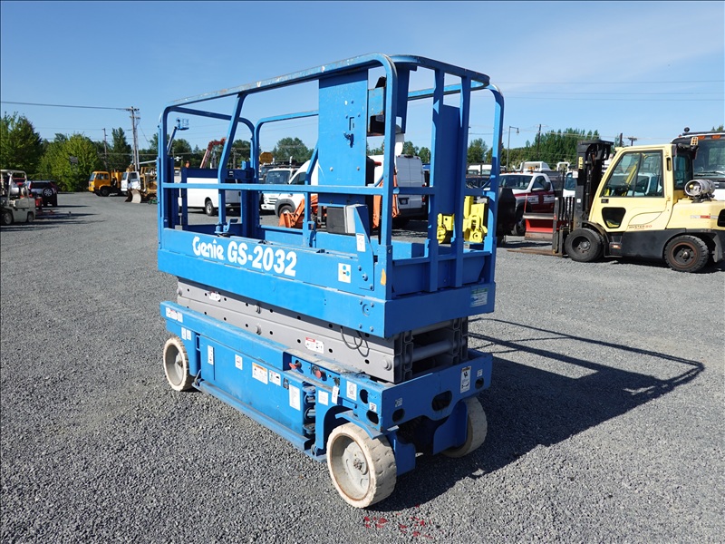 SCISSOR LIFT, 20' PLATFORM HEIGHT, 800 LB CAPACITY, A/C RECEPTICAL AT PLATFORM (UNABLE TO LOCATE SERIAL NUMBER)