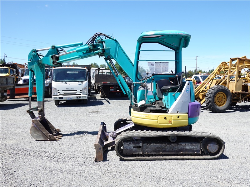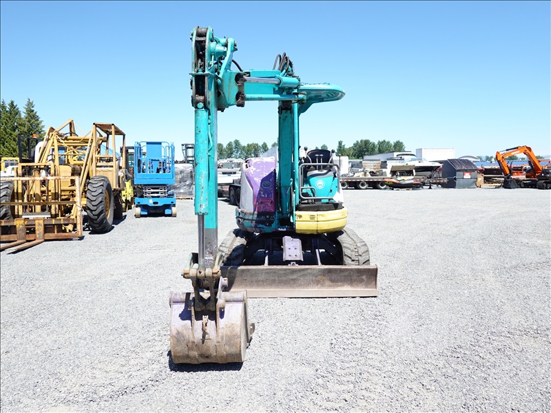 MINI EXCAVATOR, 3 CYL DIESEL, OFF SET BOOM, 18" BUCKET, BLADE, RUBBER TRACKS, CANOPY