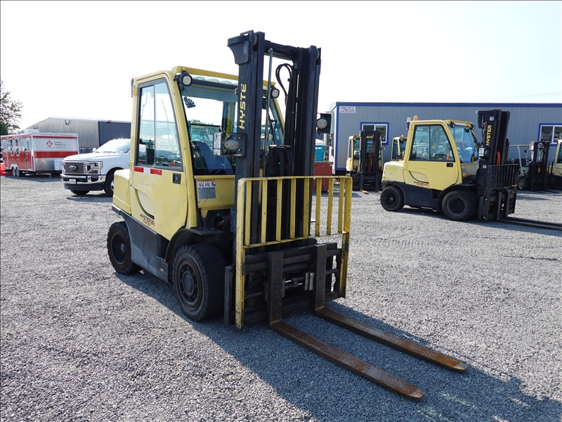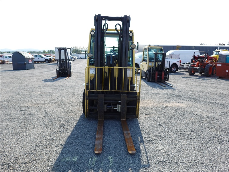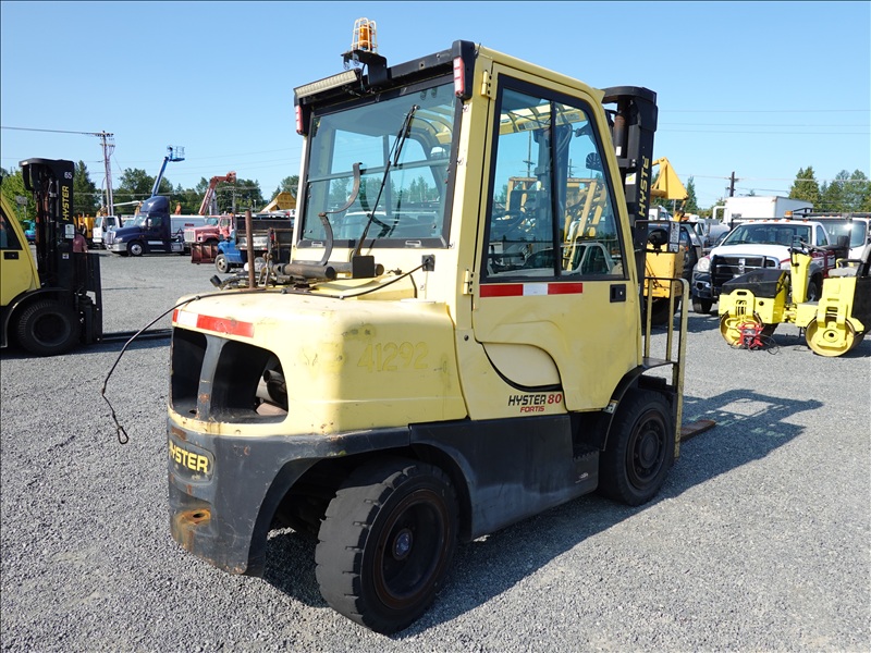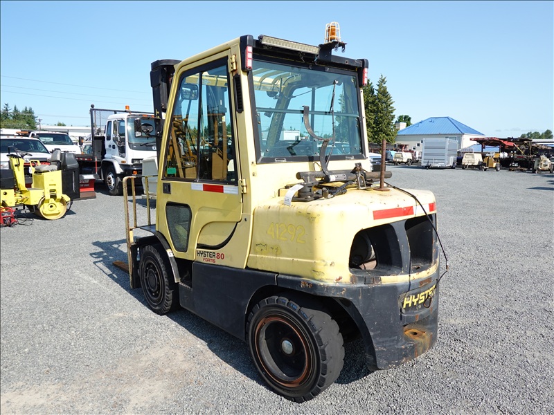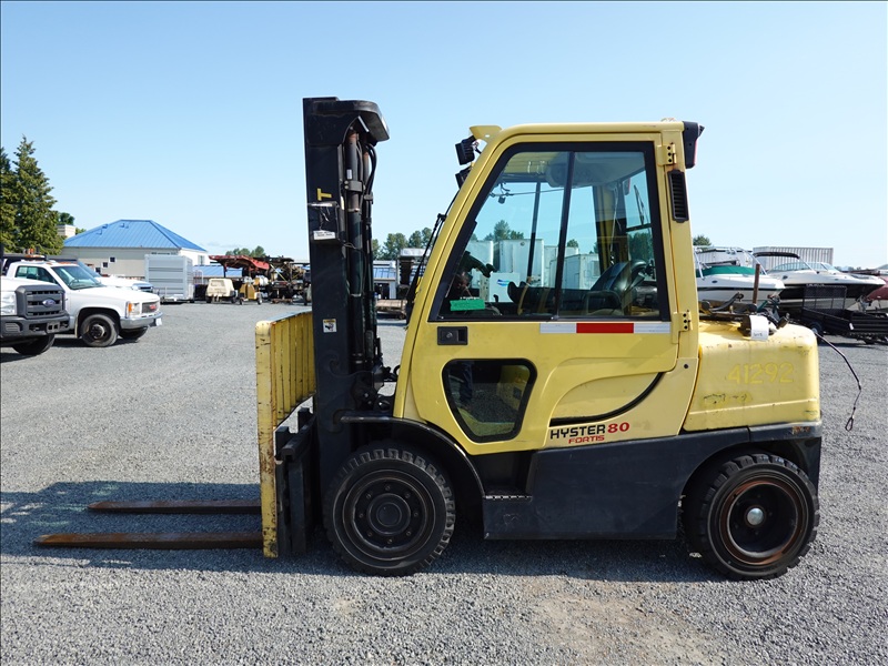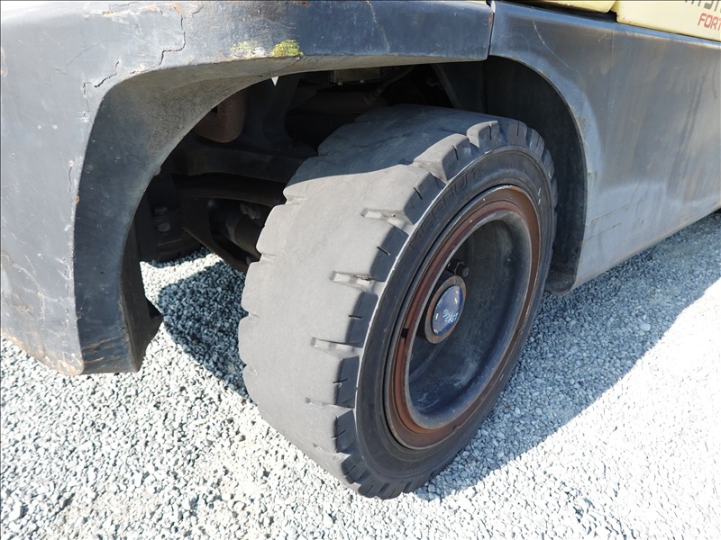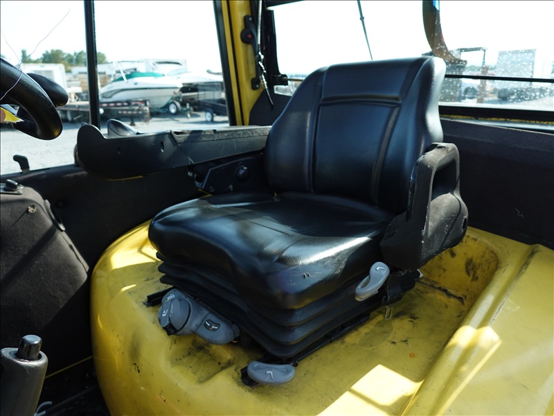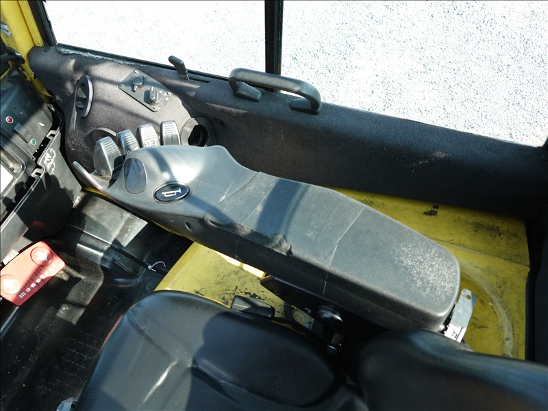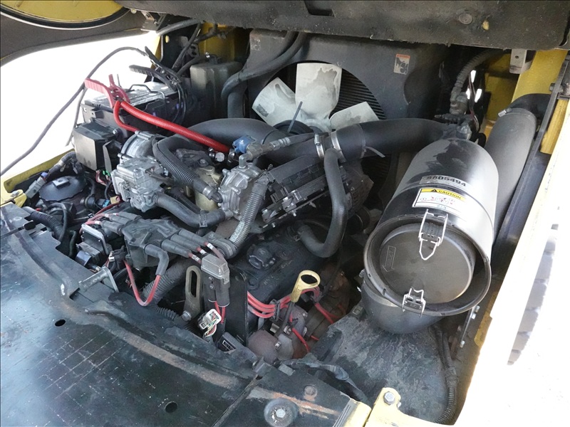 7,750 LB SOLID TIRE FORKLIFT, 144.7" FORK HEIGHT, 2-STAGE MAST, SIDE SHIFT, FORK POSITIONER, FTC, 6 CYL LPG, CAB (NO PROPANE TANK, FAULT CODE 522606-10)