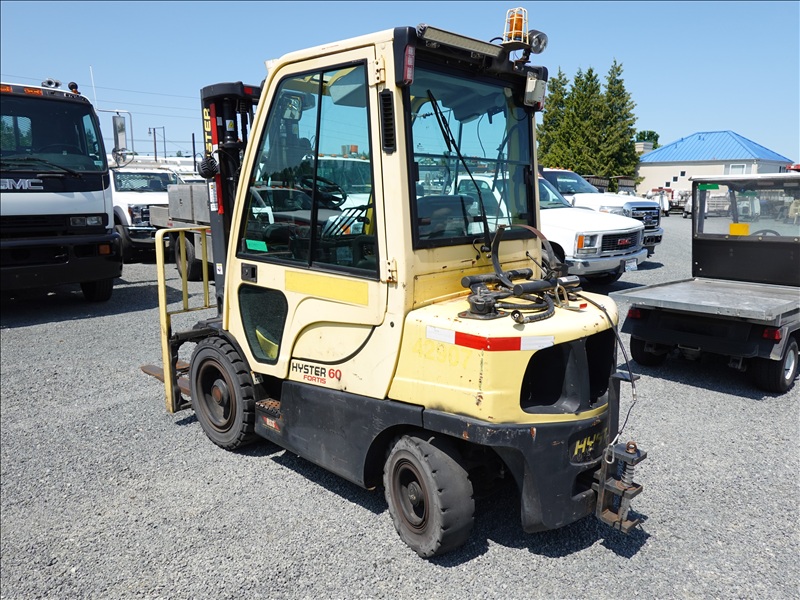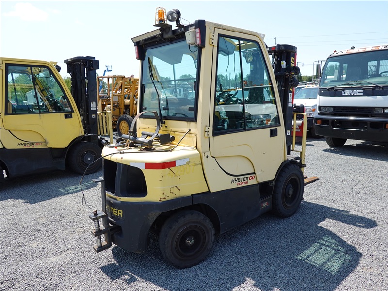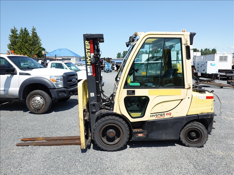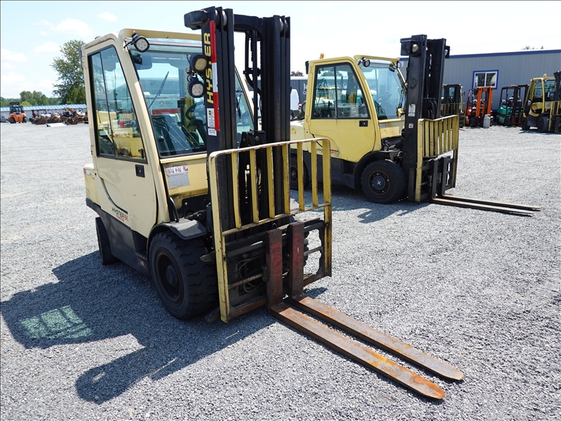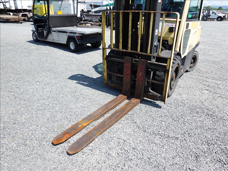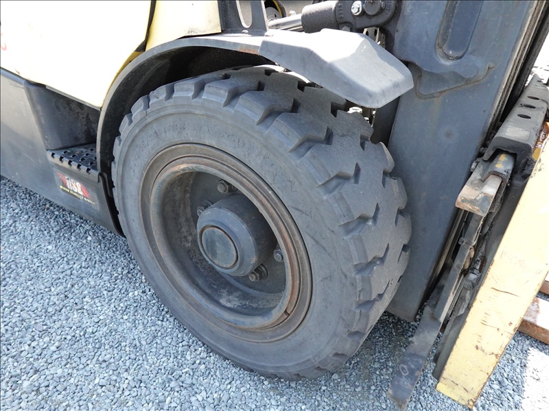 5,350 LB SOLID TIRE FORKLIFT, 181.9" FORK HEIGHT, 3-STAGE MAST, SIDE SHIFT FOR POSITIONER, FTC, 4 CYL LPG, CAB (NO PROPANE TANK)