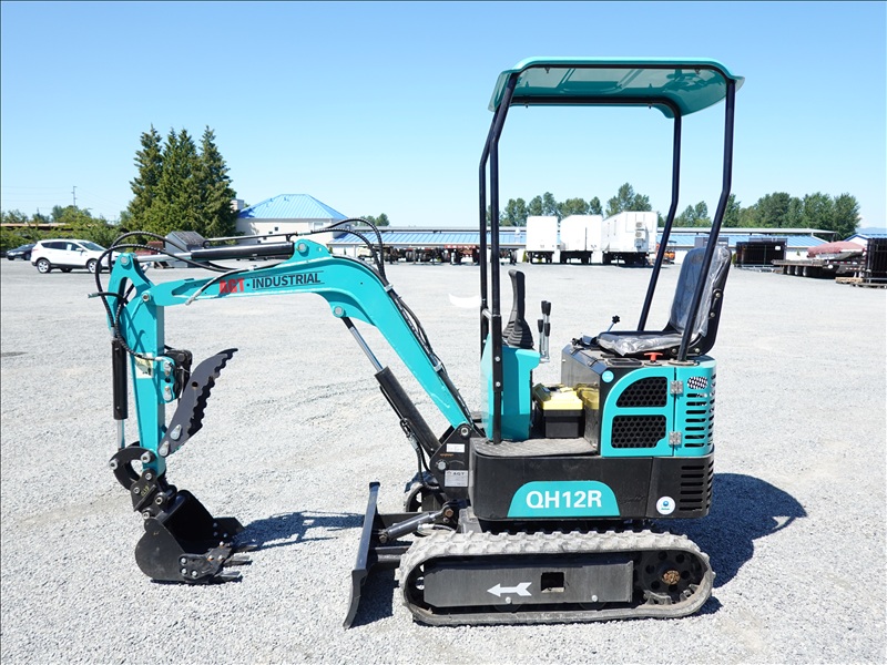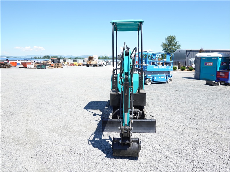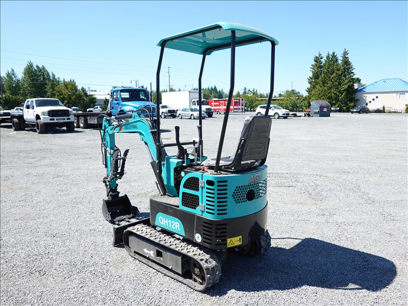 MINI EXCAVATOR, 420 CC GAS ENGINE, 16" BUCKET, HYDRAULIC THUMB, AUX HYD, BLADE, RUBBER TRACKS, CANOPY