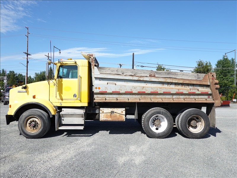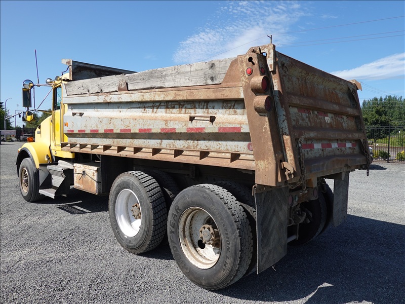 T/A, DUMP TRUCK, 15' STEEL BOX, 350 HP CAT 3406, 8LL, SPRING BEAM SUSPENSION, 203" W/B, 16,000 LB FRONT, 38,000 LB REARS, PLUMBED FOR PUP, A/B