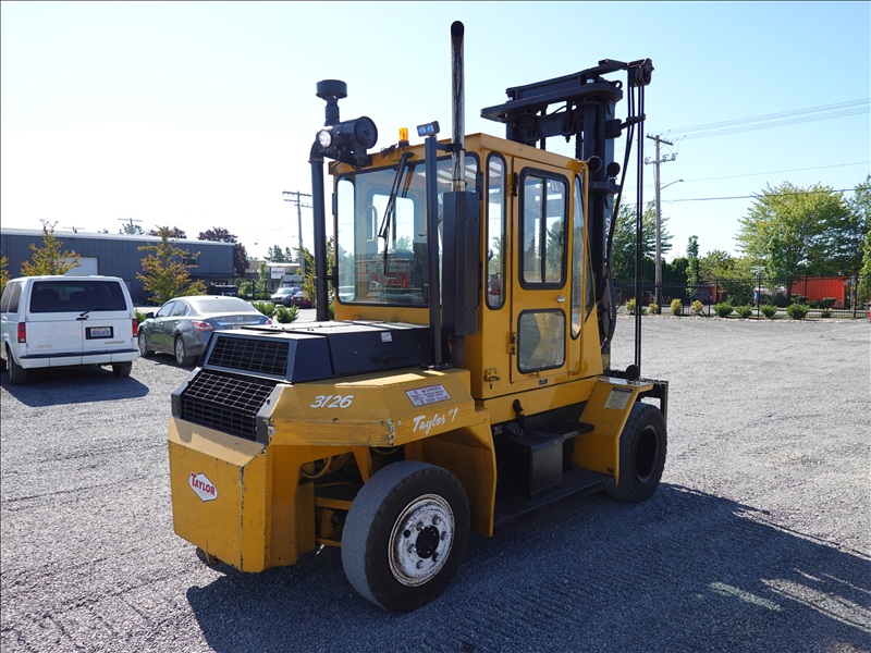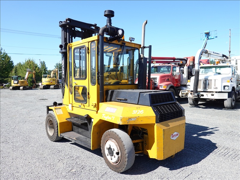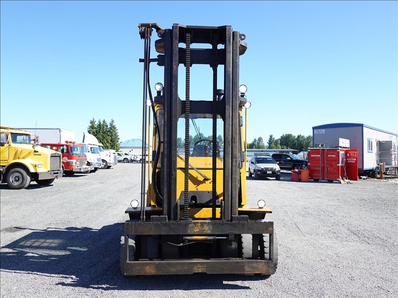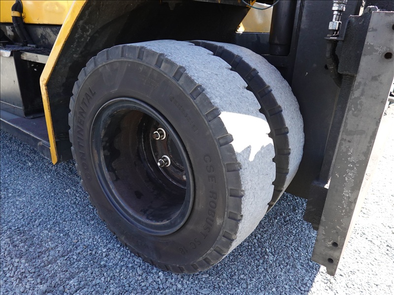 11,000 LB DUAL SOLID TIRE FORKLIFT, 216" LIFT HEIGHT, 2-STAGE MAST, SIDESHIFT, CUMMINS 4 CYL DIESEL, CAB (**NO FORKS**)