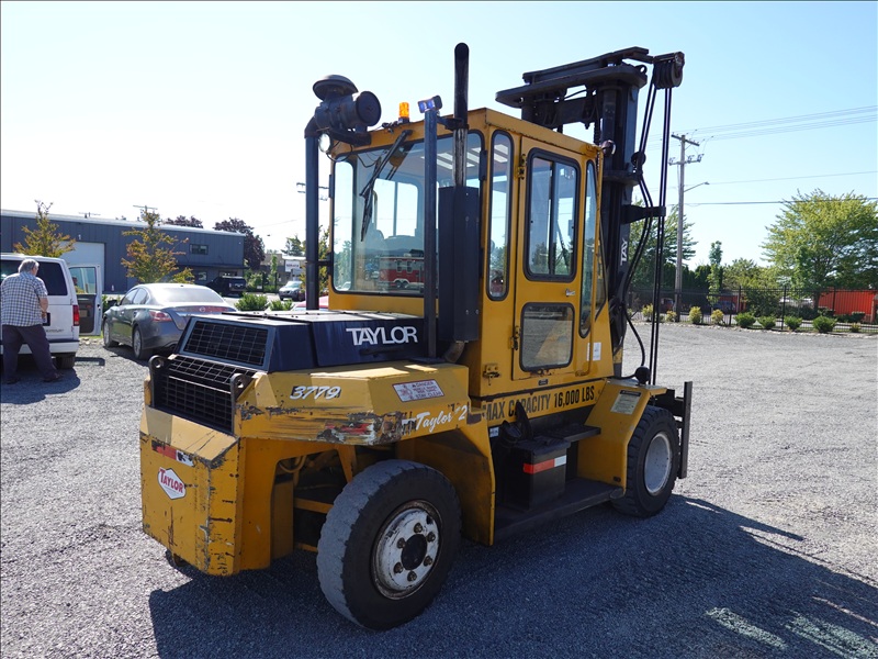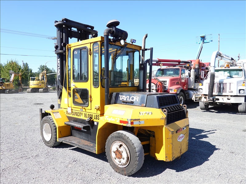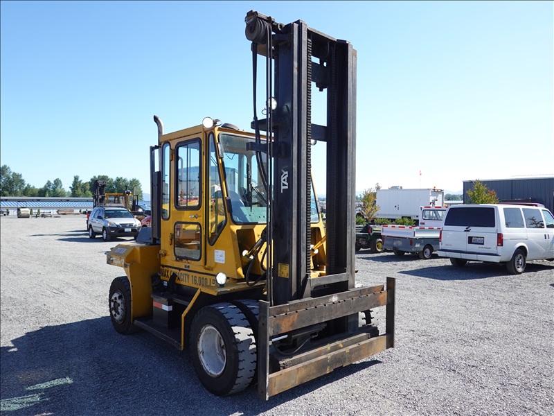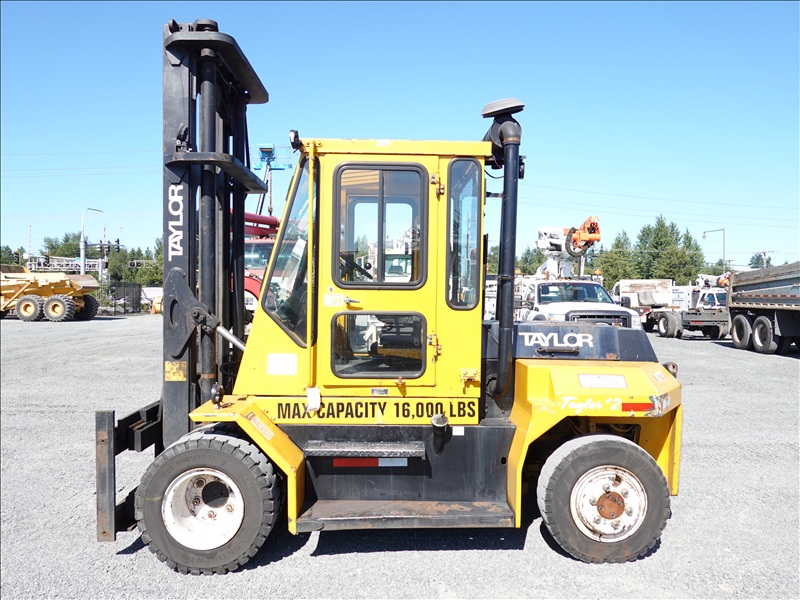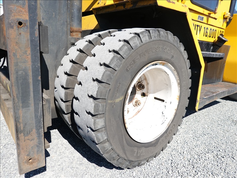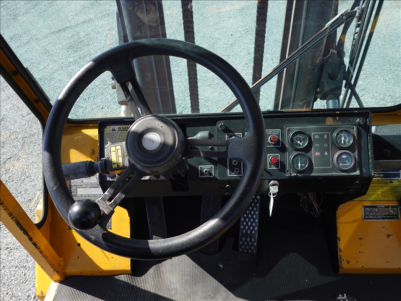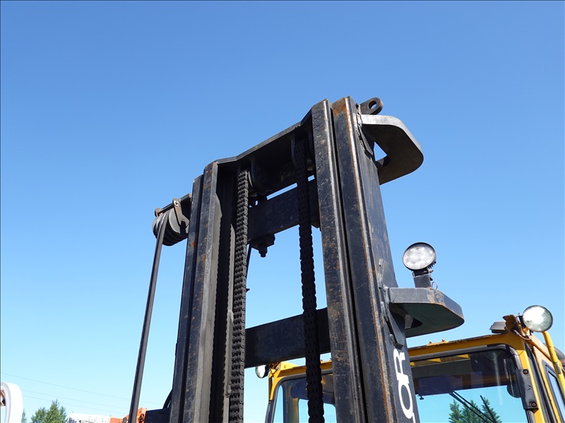 11,000 LB DUAL SOLID TIRE FORKLIFT, 216" LIFT HEIGHT, 2-STAGE MAST, SIDESHIFT, CUMMINS 4 CYL DIESEL, CAB (**NO FORKS**)