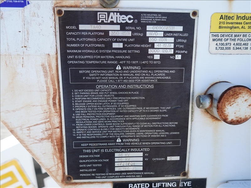 BUCKET TRUCK, ALTEC TA40, 41', 350 LB, MAXXFORCE, AUTO, A/B