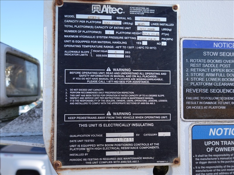 BUCKET TRUCK, ALTEC AT37G, 37.5', 350 LB, HYD OUTRIGGERS, V10, AUTO, 4WD
