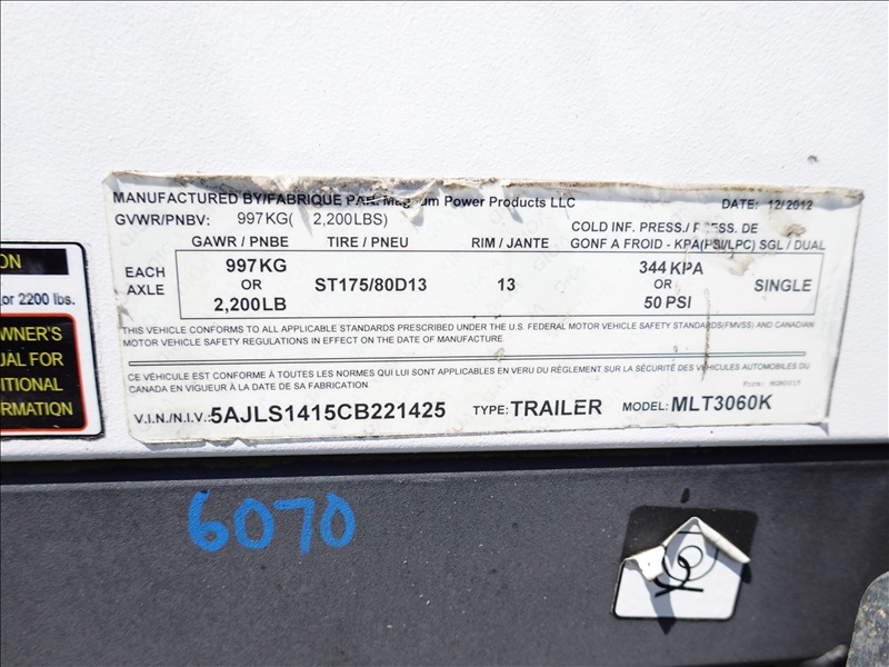 S/A, TRAILER MOUNTED LIGTH TOWER, KUBOTA 3 CYL DIESEL, 175/80D13