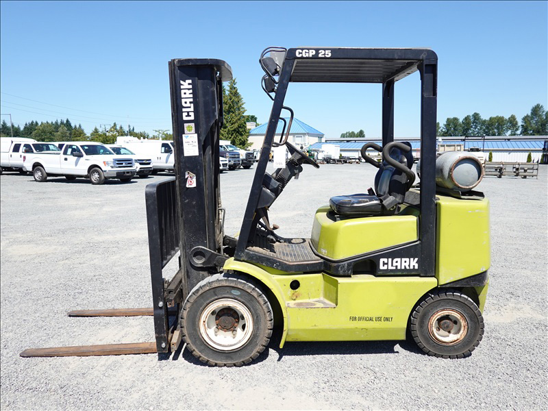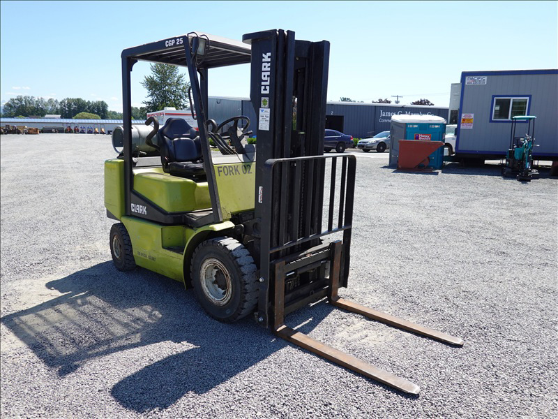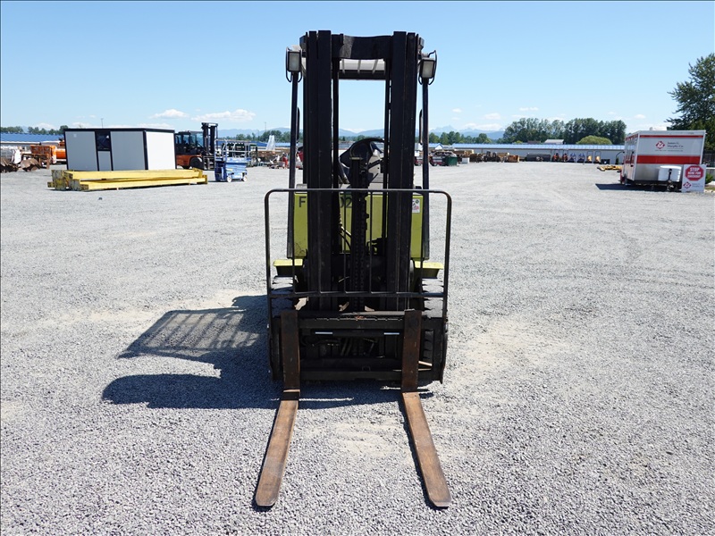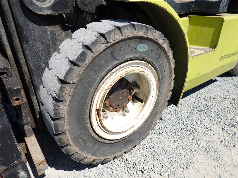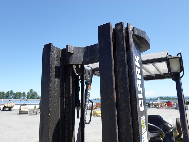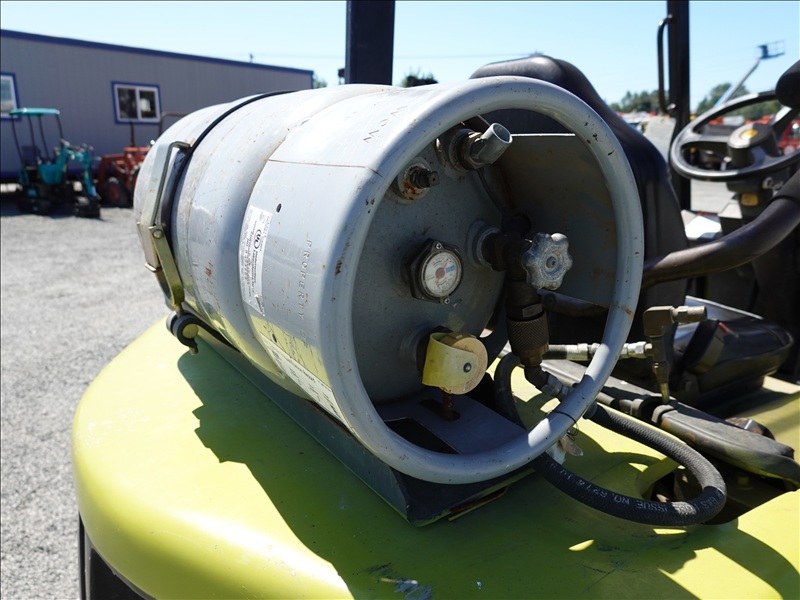 4,600 LB SOLID TIRE FORKLIFT, 189" FORK HEIGHT, 3-STAGE MAST, SIDE SHIFT, 4 CYL LPG