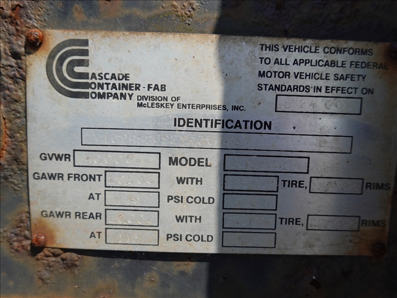 T/A, 20' 40,000 LB GVWR ROLL-OFF CONTAINER CHASSIS TRAILER, SPRING SUSPENSION, TURN TABLE, A/B, 295/75R22.5