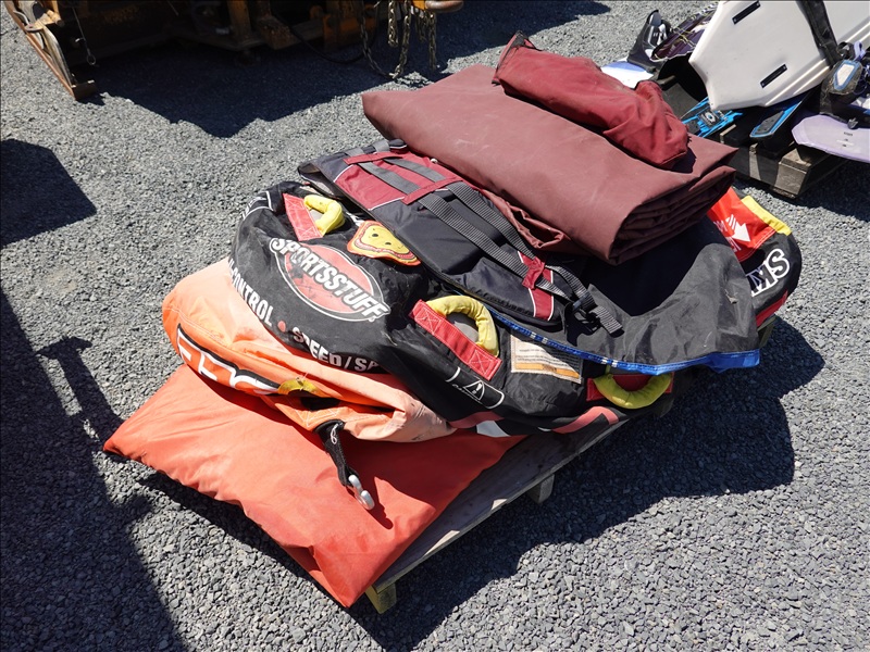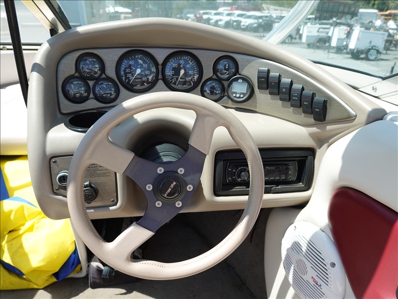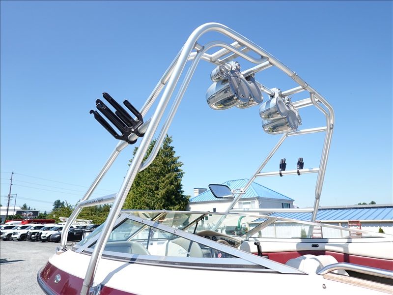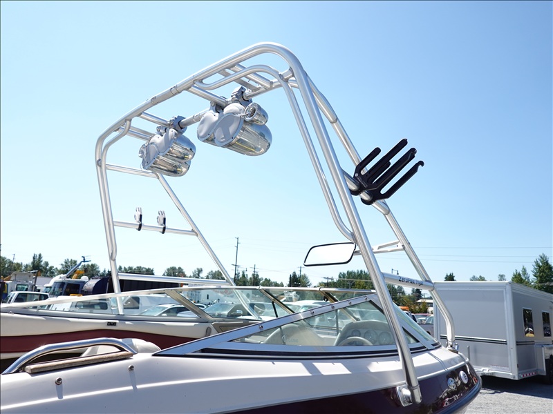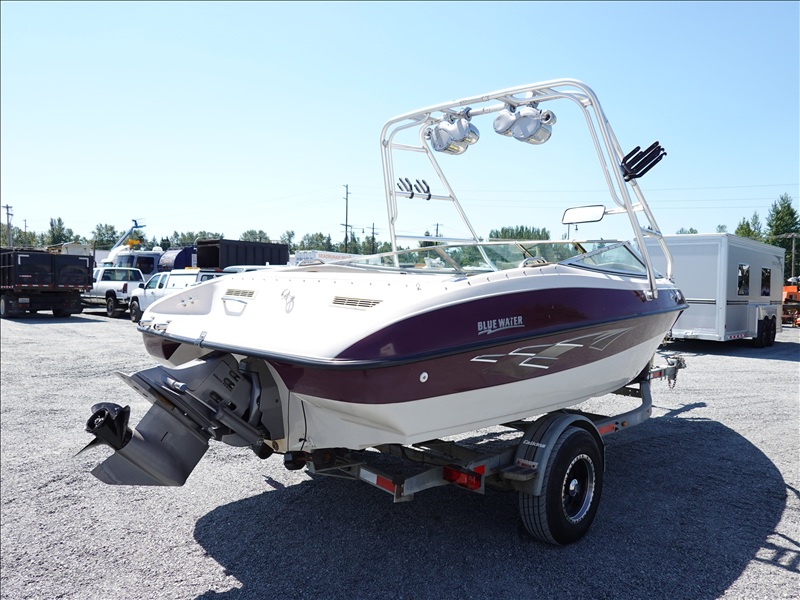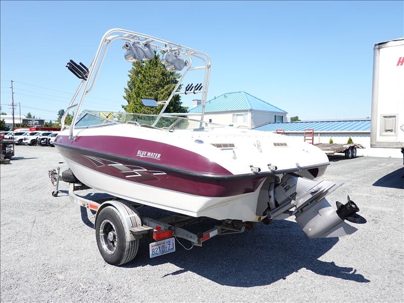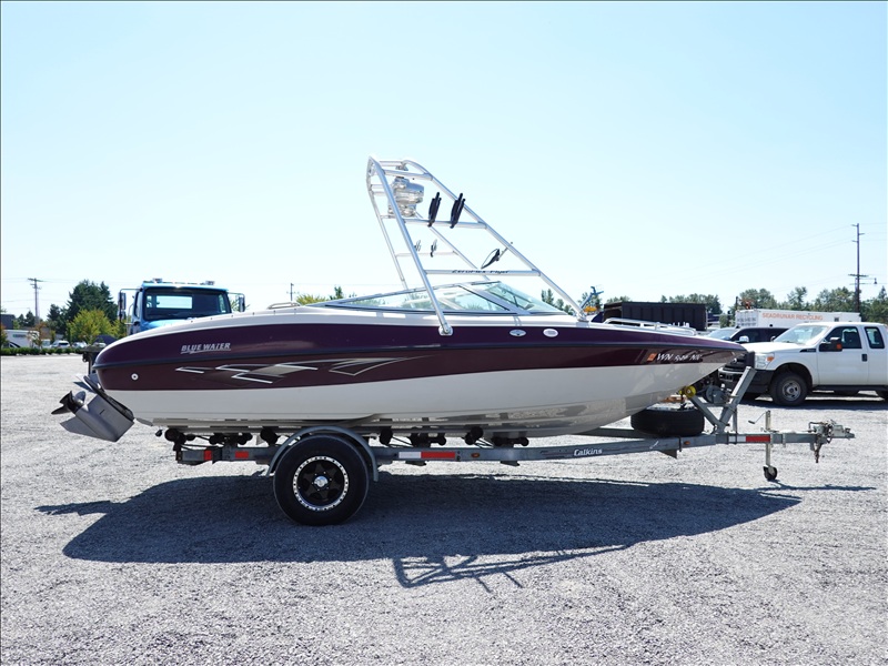 20' FIBERGLASS RUNABOUT BOAT, VOLVO PENTA SX V8 INBOARD, TOWER, BOSS SOUND SYSTEM, PYRAMID AMERICA 2,000 WATT AMPLIFIER (COME W/ASSORTED INNER TUBES, WAKEBOARDS & SKIS) W/1990 CALKINS MIRAGE, S/A, APPROX 20' GALVANIZED BOAT TRAILER, SPRING SUSPENSION, SUR
