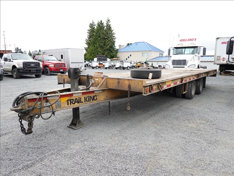 T/A, 28' X 8'6" 49,300 LB GVWR HYDRAULIC BEAVER TAIL EQUIPMENT TRAILER, SPRING SUSPENSION, A/B, 215/75R17.5