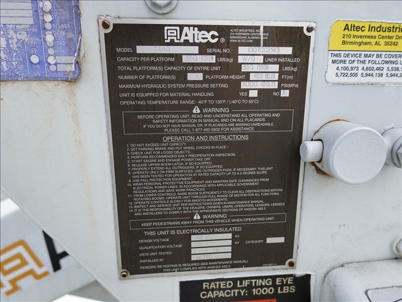 BUCKET TRUCK, ALTEC TA40, 41', 350 LB, DT, AUTO, A/B