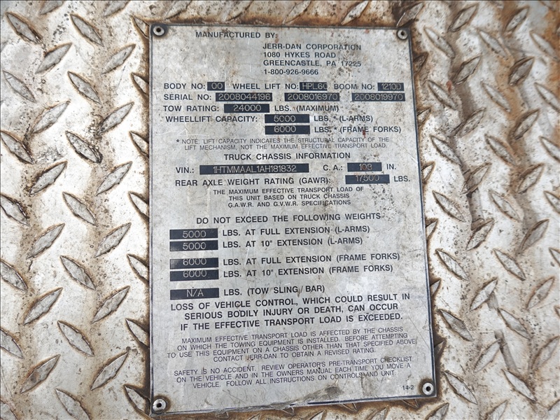 TWIN LINE WRECKER, JERR-DAN HPL60 BOOM, RAMSEY WINCH, UNDERLIFT, MAXXFORCE, AUTO, A/B (**RUNS POOR, EXCESSIVE ENGINE SMOKE**)