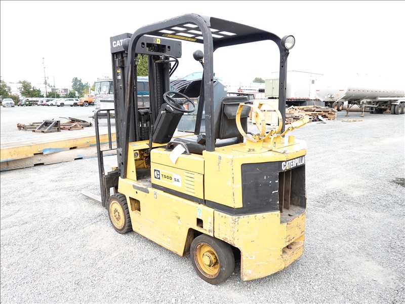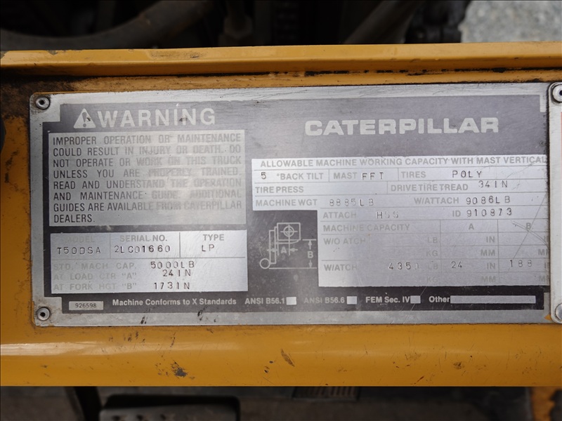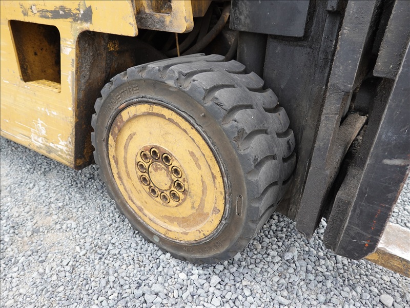 5,000 LB HRT FORKLIFT, 173" FORK HEIGHT, 3-STAGE MAST, CAT 1404 4 CYL PROPANE (**CONSIGNOR DISCLOSURE: RADIATOR NEEDS REPAIR, PROPANE GASKET FOR HOSE LEAK, NO PROPANE BOTTLE**)