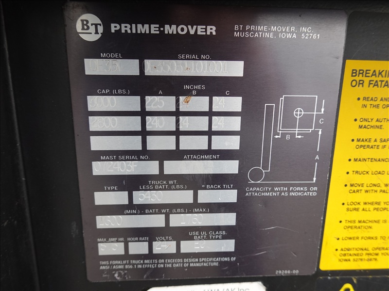 3,000 LB, 24V ORDER PICKER, 240" LIFT HEIGHT (**CONSIGNOR DISCLOSURE: NEEDS NEW BATTERY, OTHER CONDITIONS UNKNOWN**)
