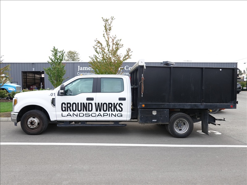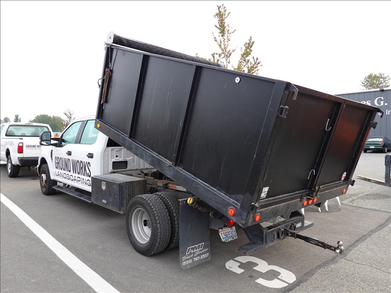 CREW CAB, 10' FLAT BED/DUMP, TARP SYSTEM, V8, AUTO