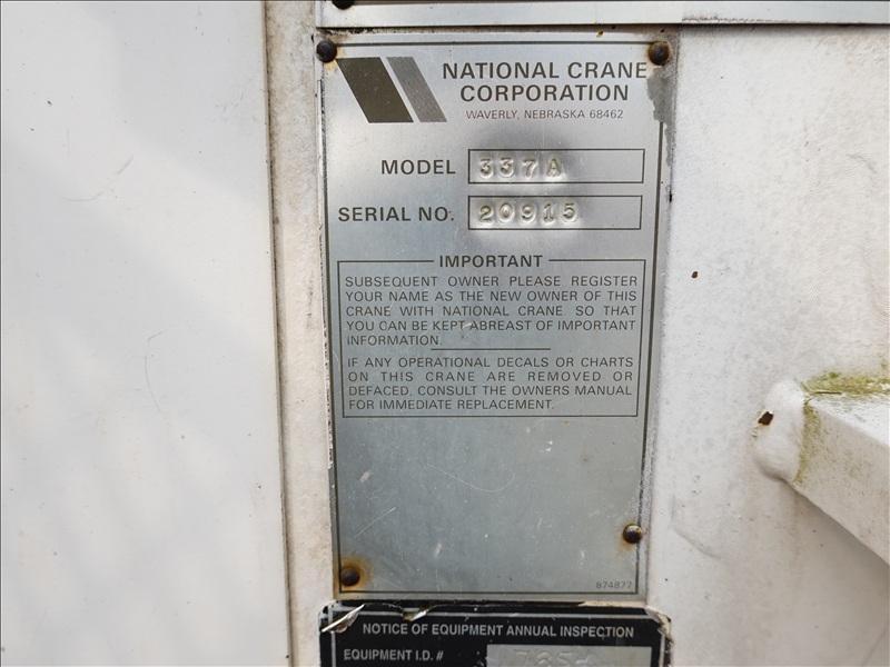 T/A, BOOM TRUCK, NATIONAL 337A 15,000 LB TELESCOPING CRANE, 47' 3-SECTION BOOM, OUTRIGGERS, 13' BOX, 6 CYL DIESEL, 10 SPD, A/B (**CONSIGNOR DISCLOSURE: BAD CLUTCH, RUNS, PLEASE PREVIEW**)