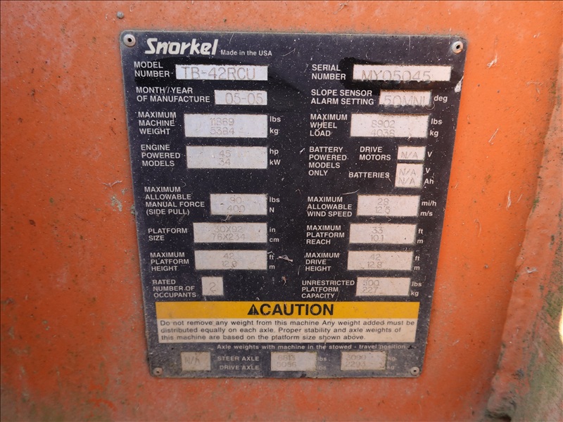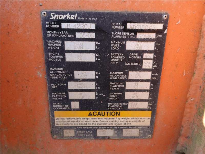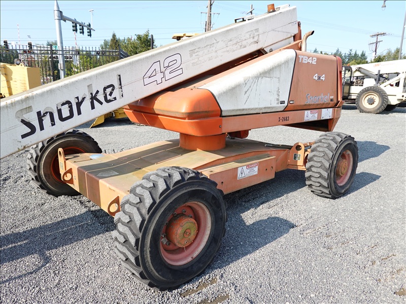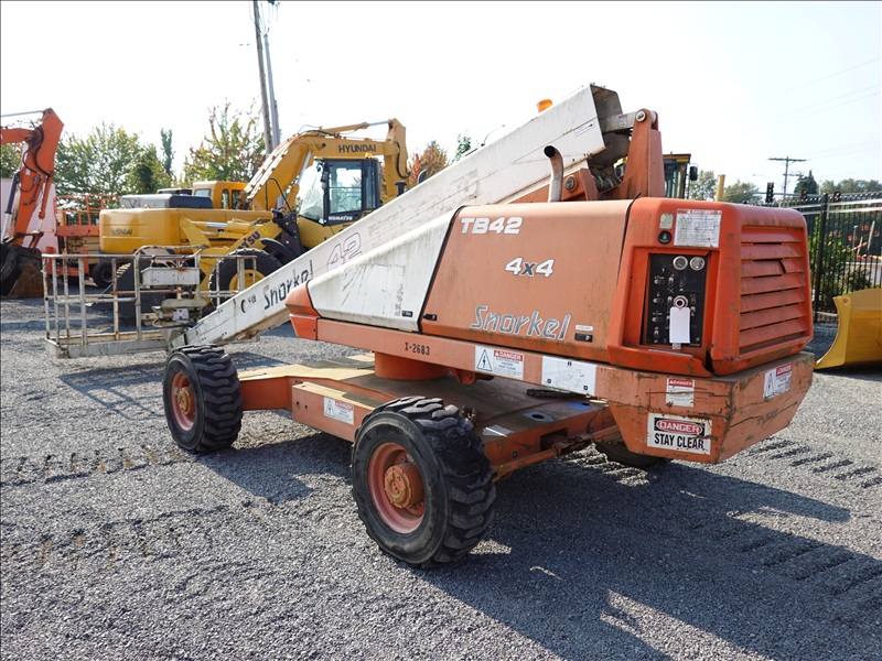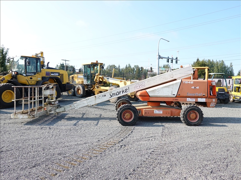 4X4 TELESCOPIC BOOM LIFT, 42' LIFT HEIGHT, 500 LB CAPACITY, A/C RECEPTICAL AT PLATFORM, CUMMINS B3.3