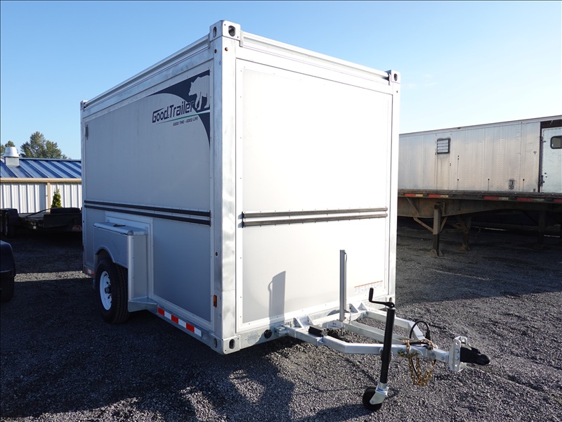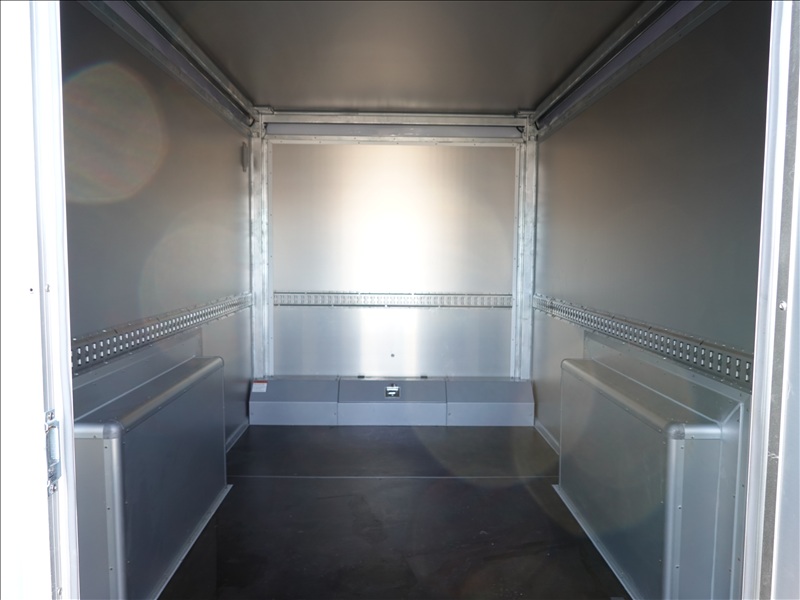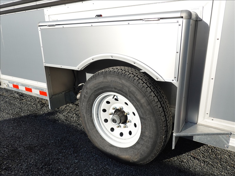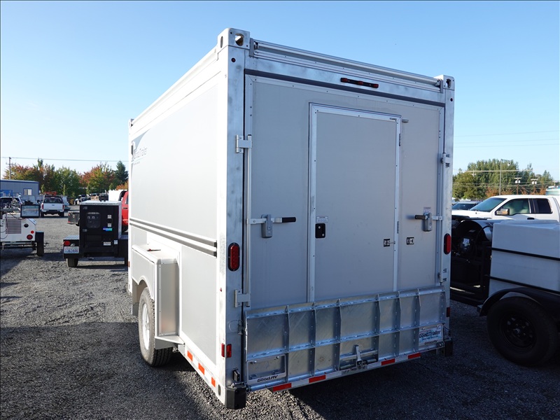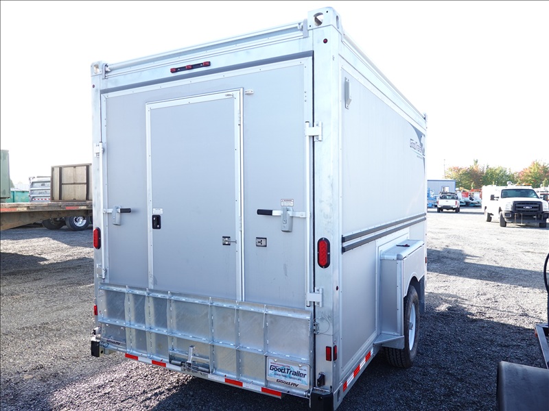 S/A, 13' X 7' 7,000 LB GVWR HYDRAULIC DROP DECK ENCLOSED CARGO TRAILER, SIDE DOOR, END DOOR, FOLDING TONGUE, ELECTRIC BRAKES, 235/80R16