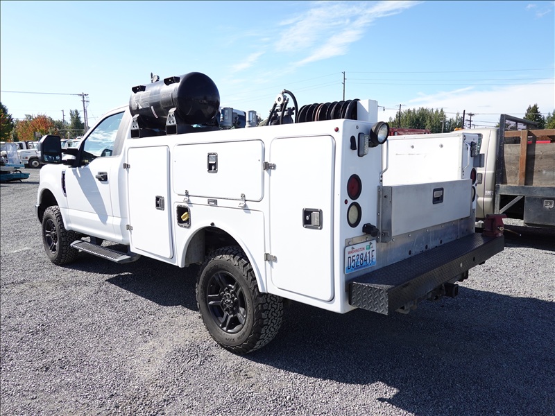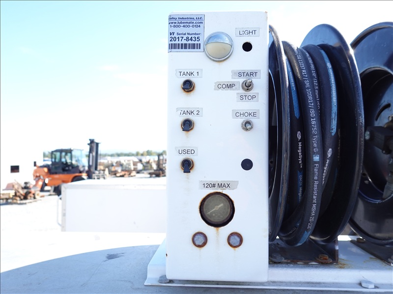 SERVICE BODY, (2) 15 GALLON OIL TANKS, AIR COMPRESSOR, (4) HOSE REELS, PUMPS, 4WD