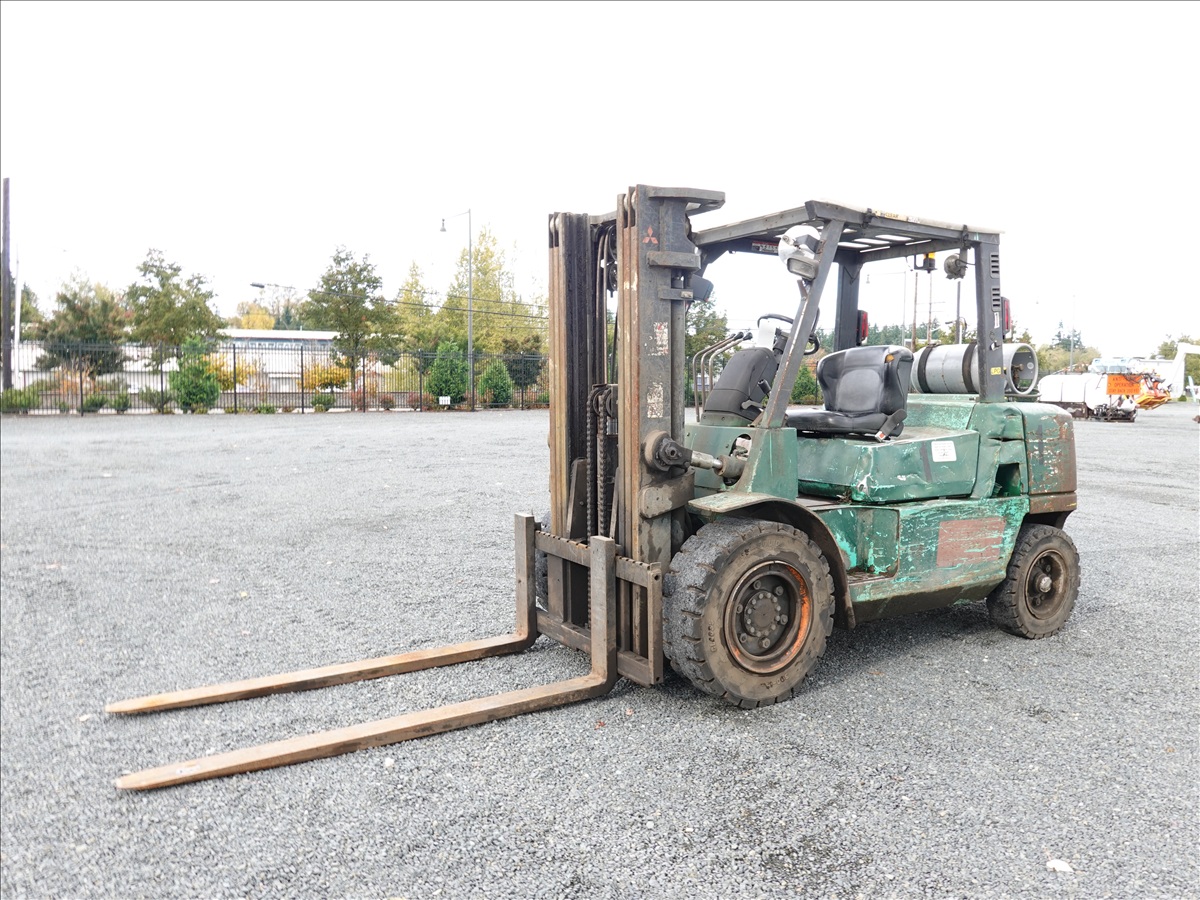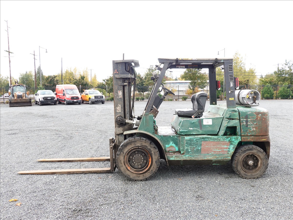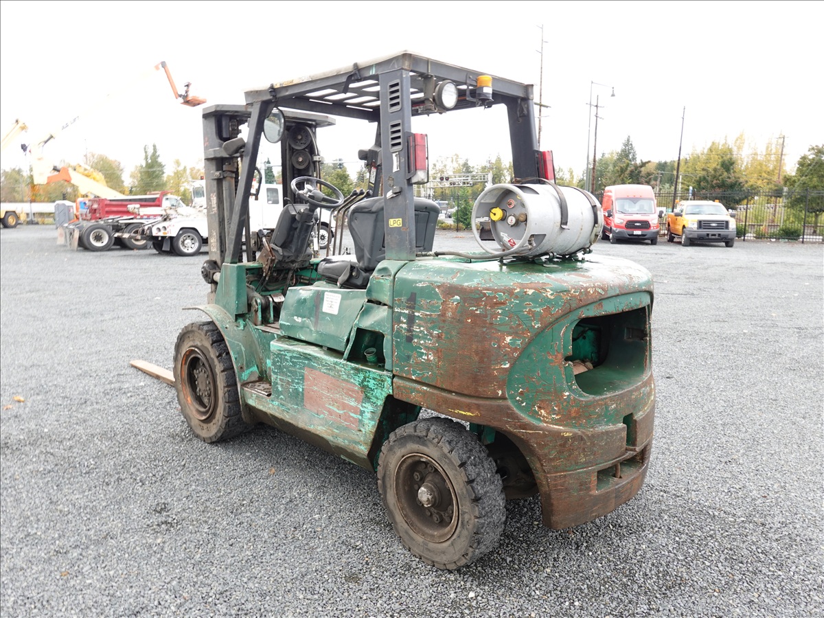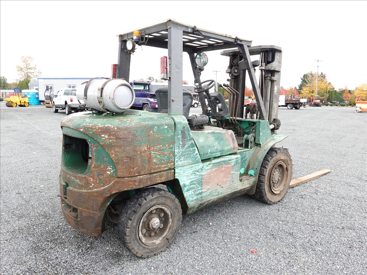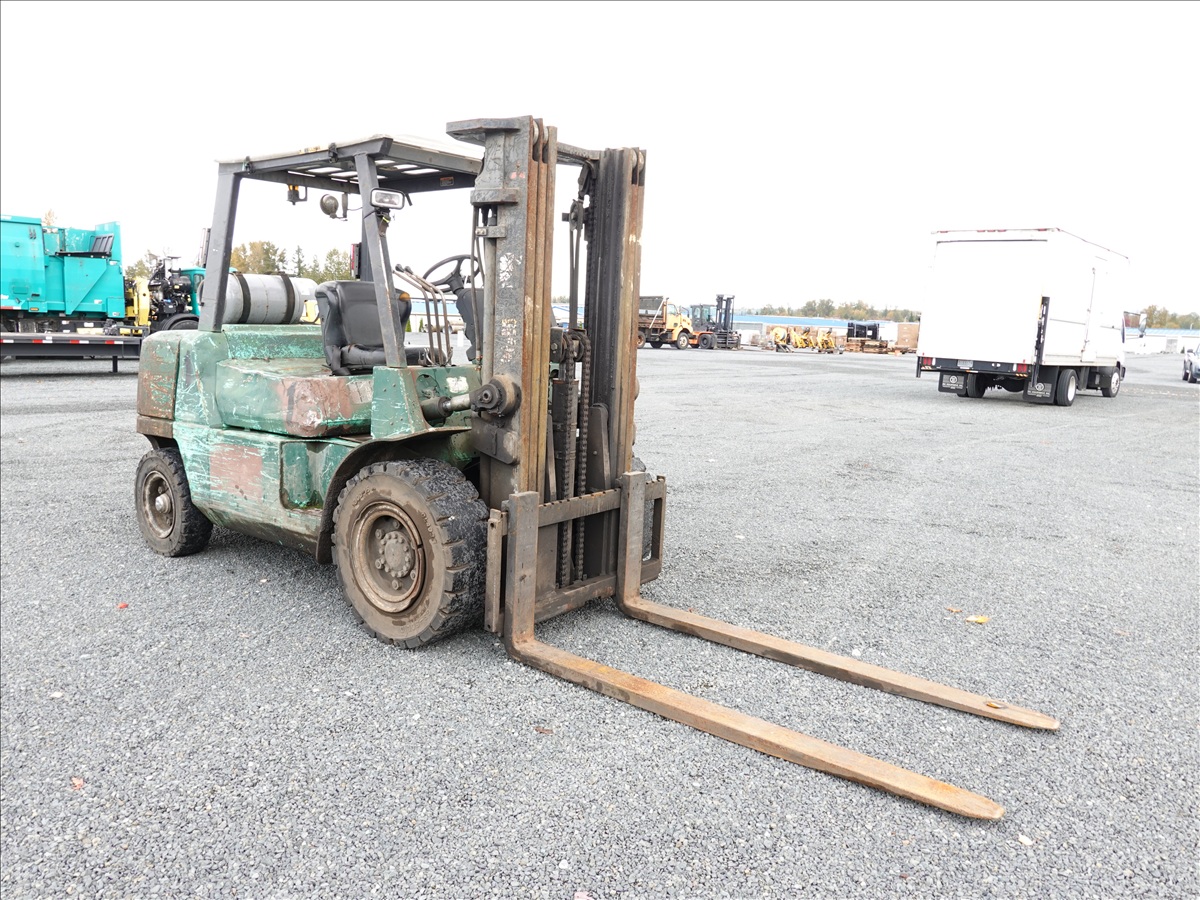 8,800 LB SOLID TIRE FORKLIFT, 173" FORK HEIGHT, 3-STAGE MAST, 72" FORKS, 6 CYL LPG
