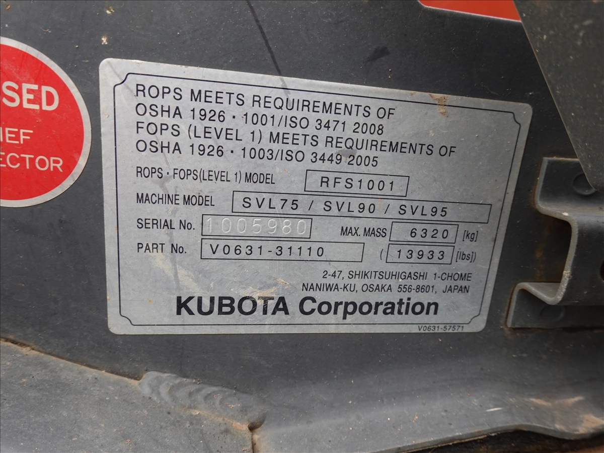 2016 KUBOTA SVL75-2 TRACKED SKID STEER LOADER