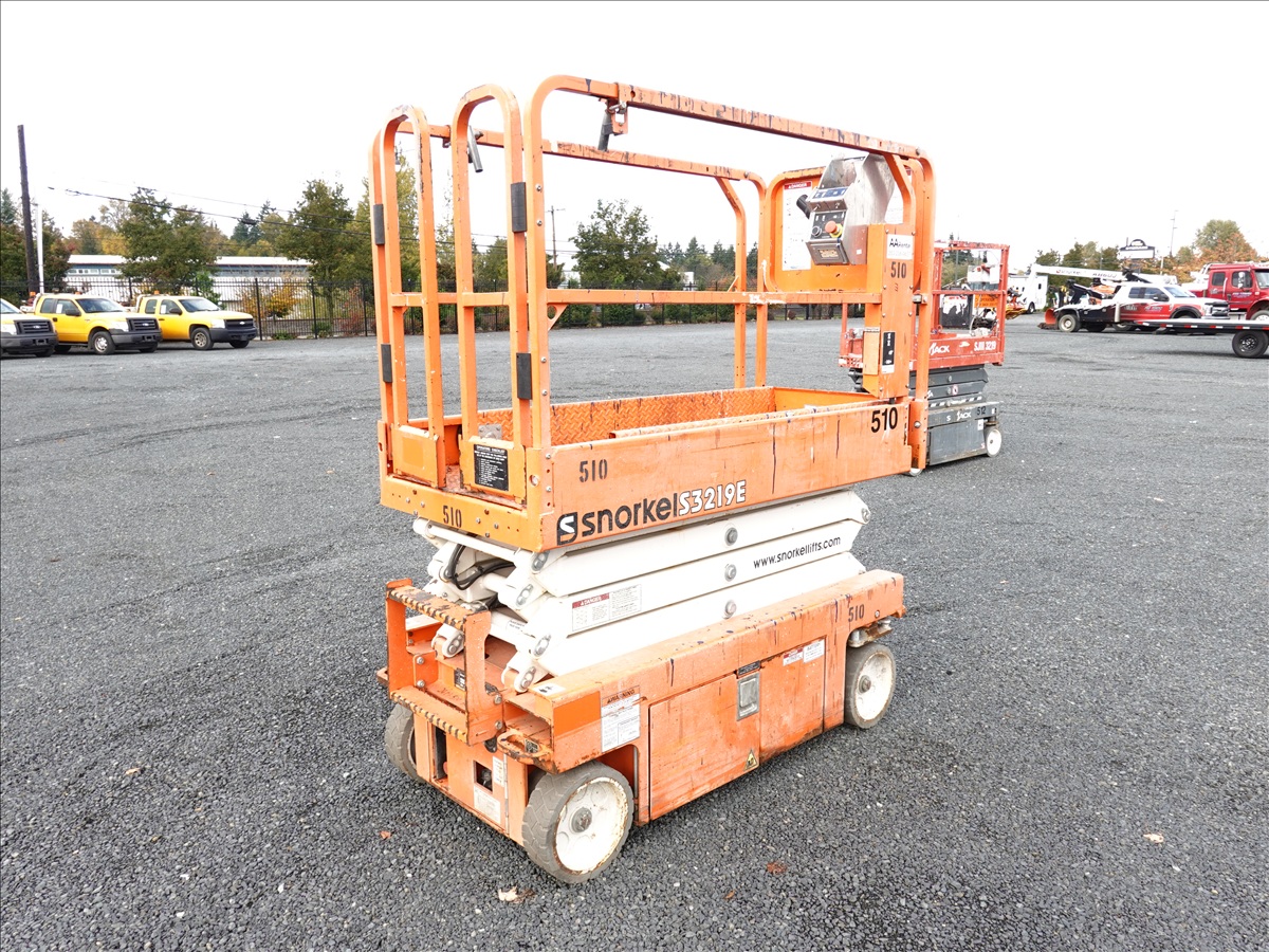 SCISSOR LIFT, 19' PLATFORM HEIGHT, 550 LB CAPACITY, A/C RECEPTICAL AT PLATFORM